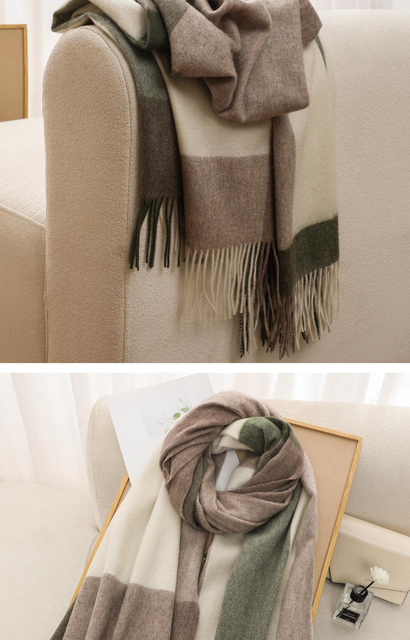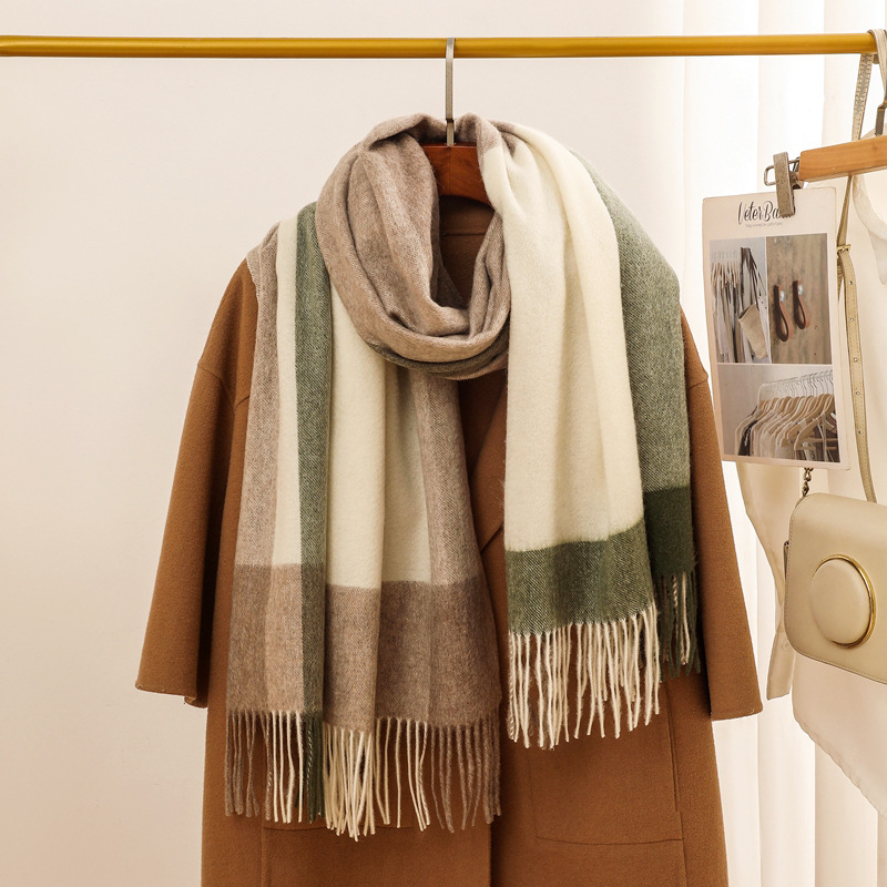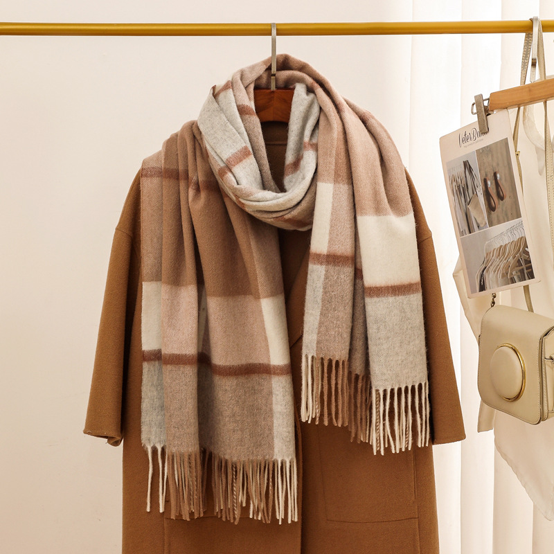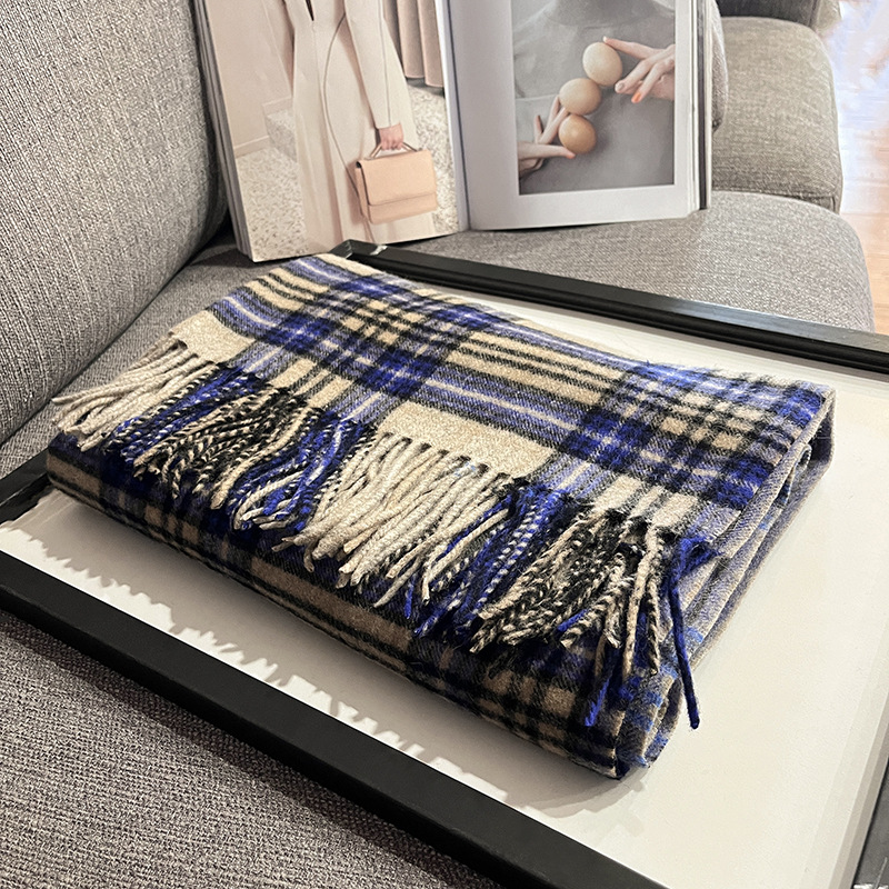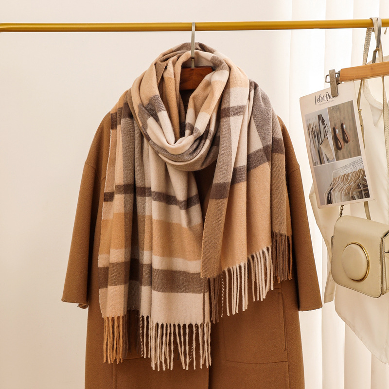 가을과 겨울 새로운 100% 울 스카프 여성용 라이트 럭셔리 고급 감각 격자 무늬 숄 모든 매치 초대형 두꺼운 따뜻한 스카프스토어 가기