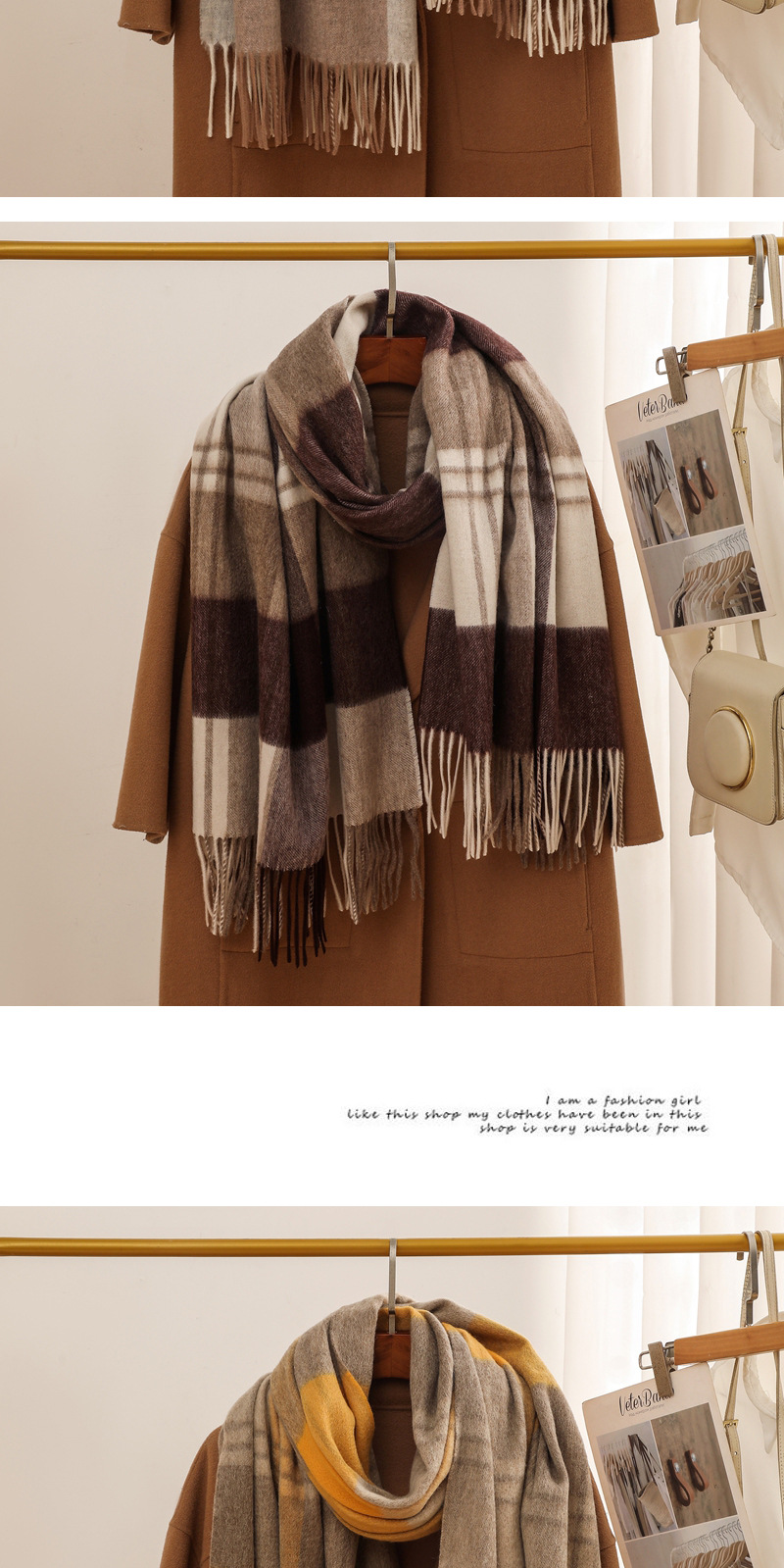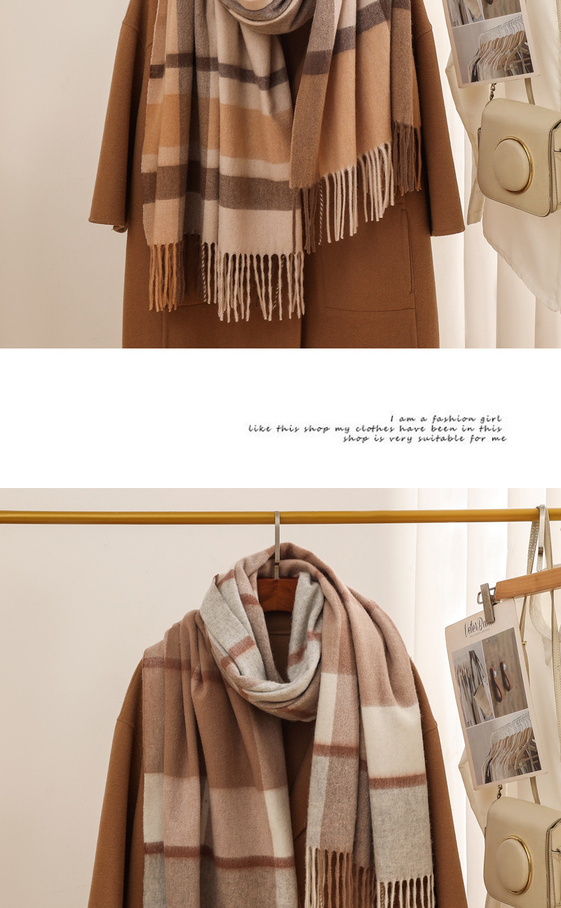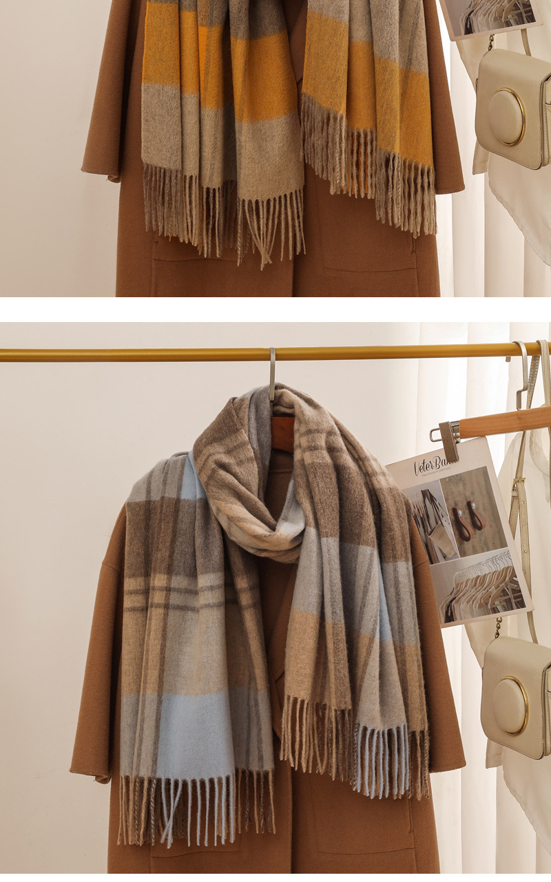 가을과 겨울 새로운 100% 울 스카프 여성용 라이트 럭셔리 고급 감각 격자 무늬 숄 모든 매치 초대형 두꺼운 따뜻한 스카프스토어 가기