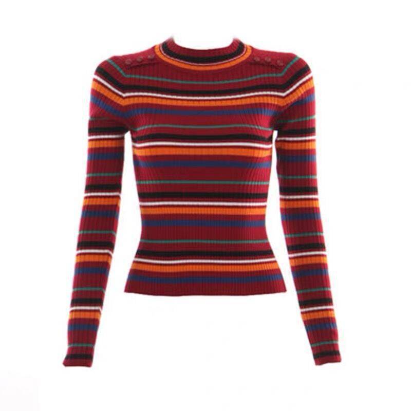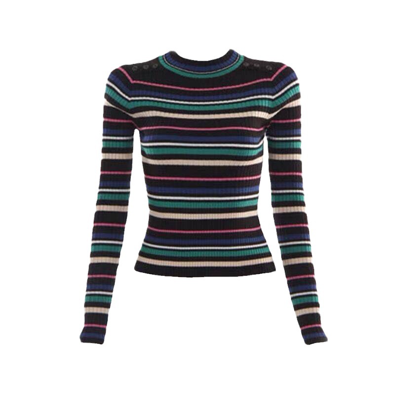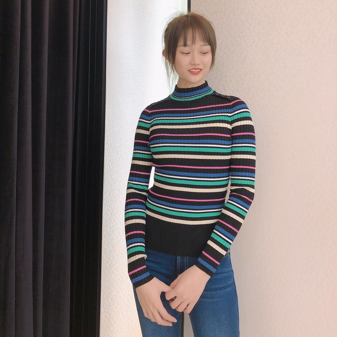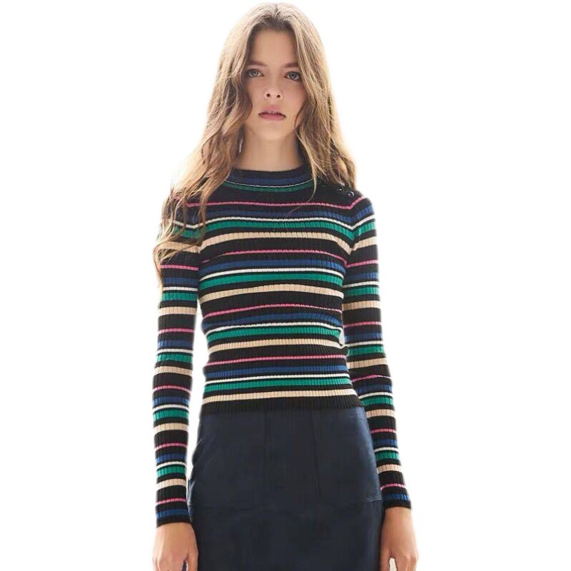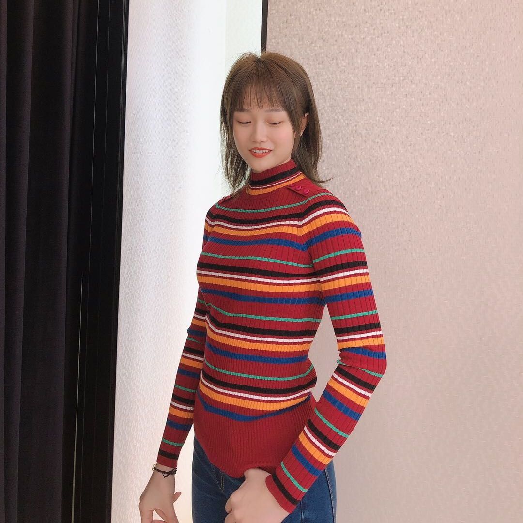 Brother's New Women's 2023 봄과 가을 슬림핏 슬리밍 컬러 스트라이프 스웨터 여성용 울 니트 셔츠 베이스 셔츠스토어 가기