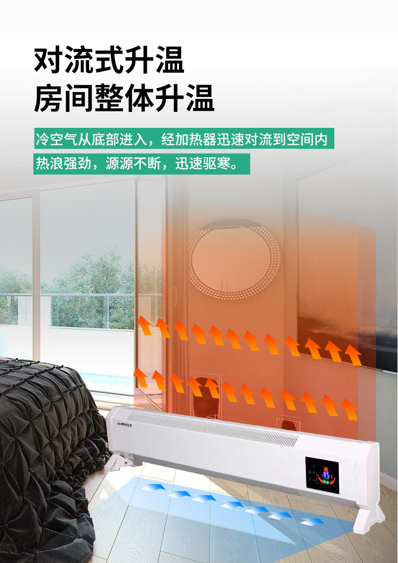 벽걸이형 베이스보드 전기 히터 항온 대류 히터 홈 오피스 절전 급속 가열 실내 히터