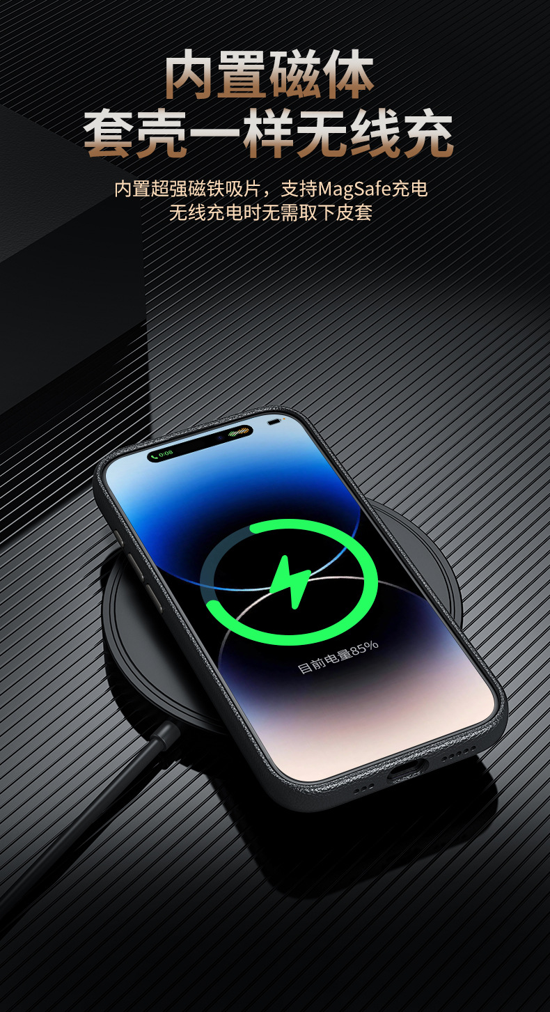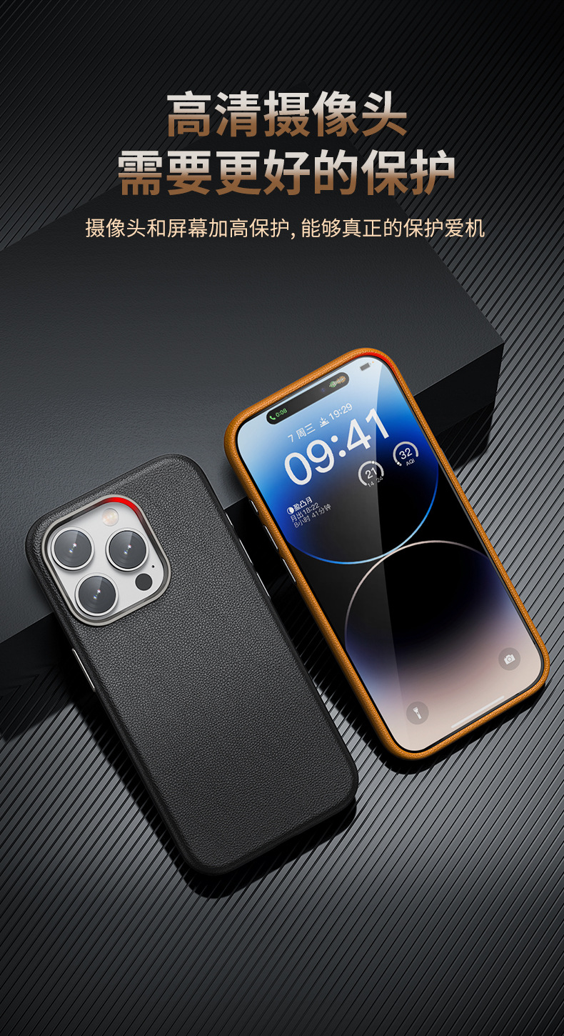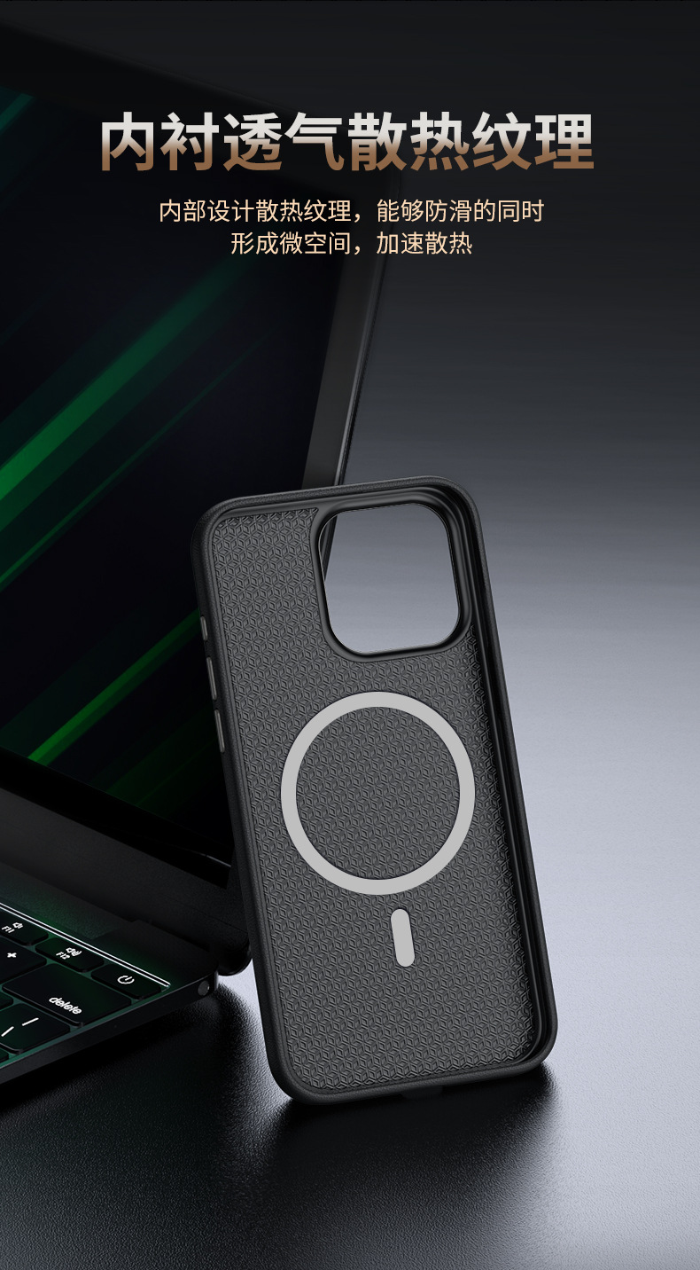 IPhone15promax 새로운 사업 가죽 마그네틱 폰 케이스 애플 16 열 분산 PU 가죽 하드 케이스