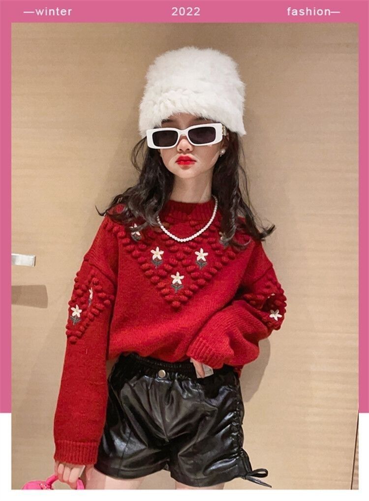 여아 스웨터 2024 가을 겨울 인기 겨울 두꺼운 패셔너블한 트렌디한 중대형 아동용 니트 스웨터