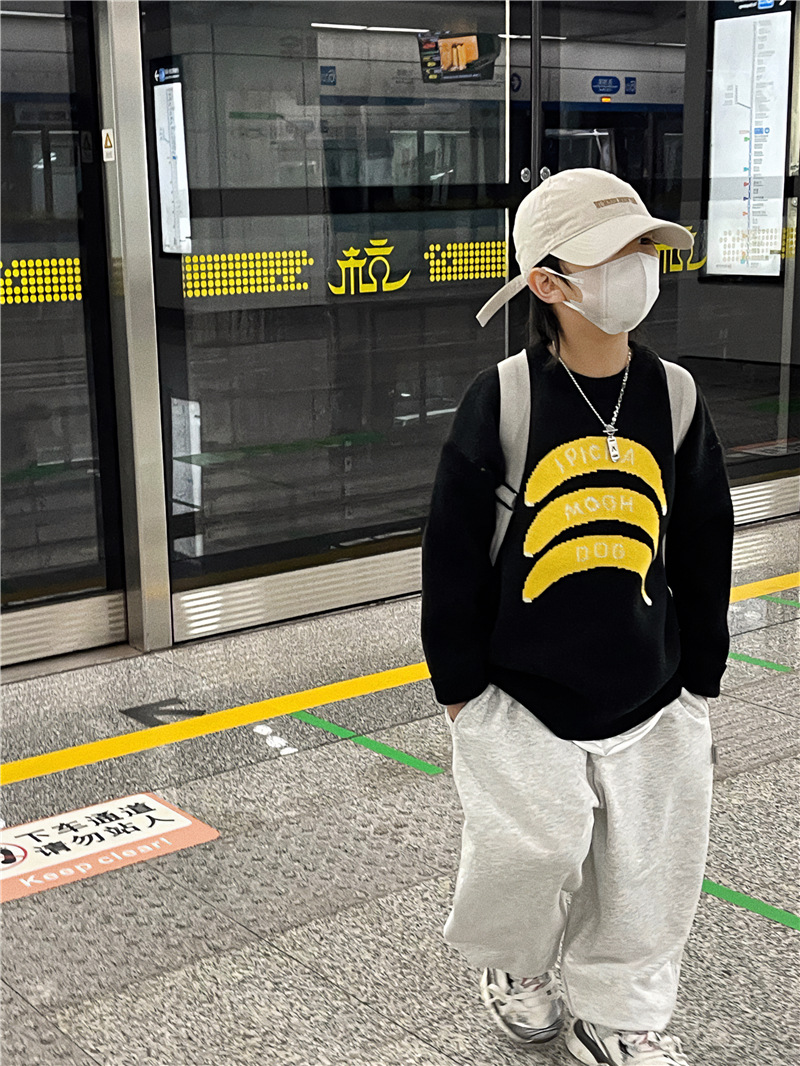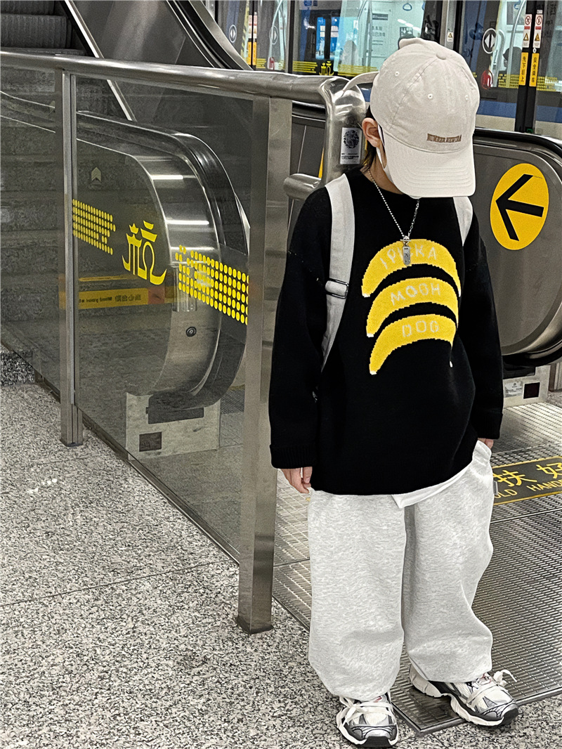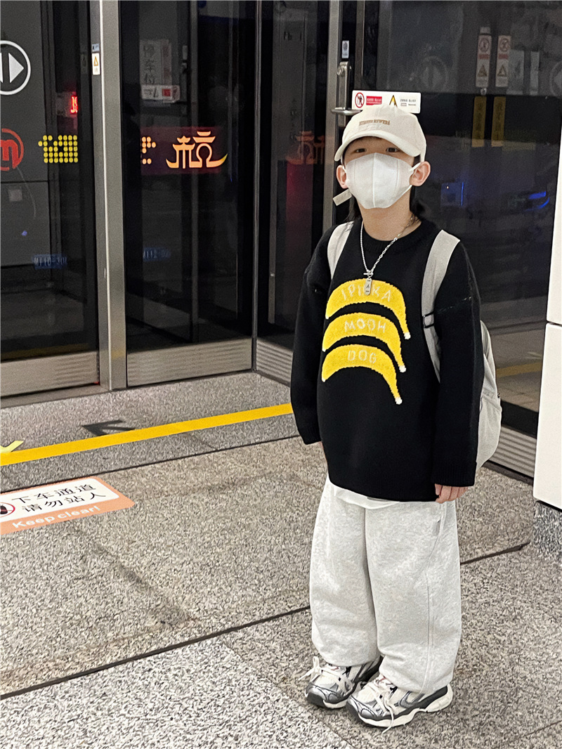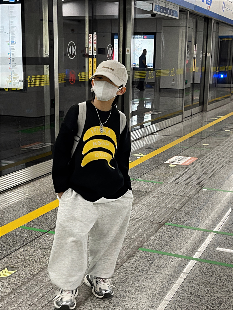 Baoduo 아동복 소년 가을과 겨울 스웨터 2023 새로운 아기 가을 라운드 넥 풀오버 겨울 스웨터