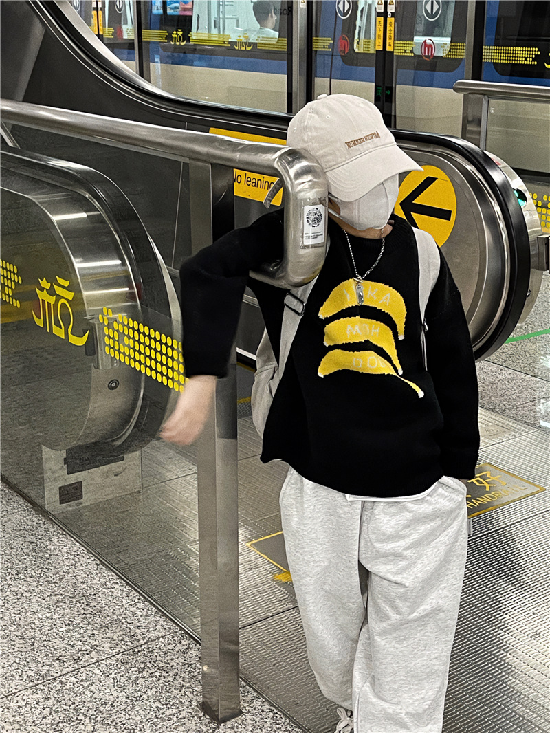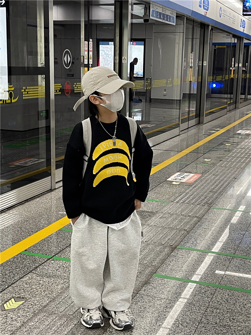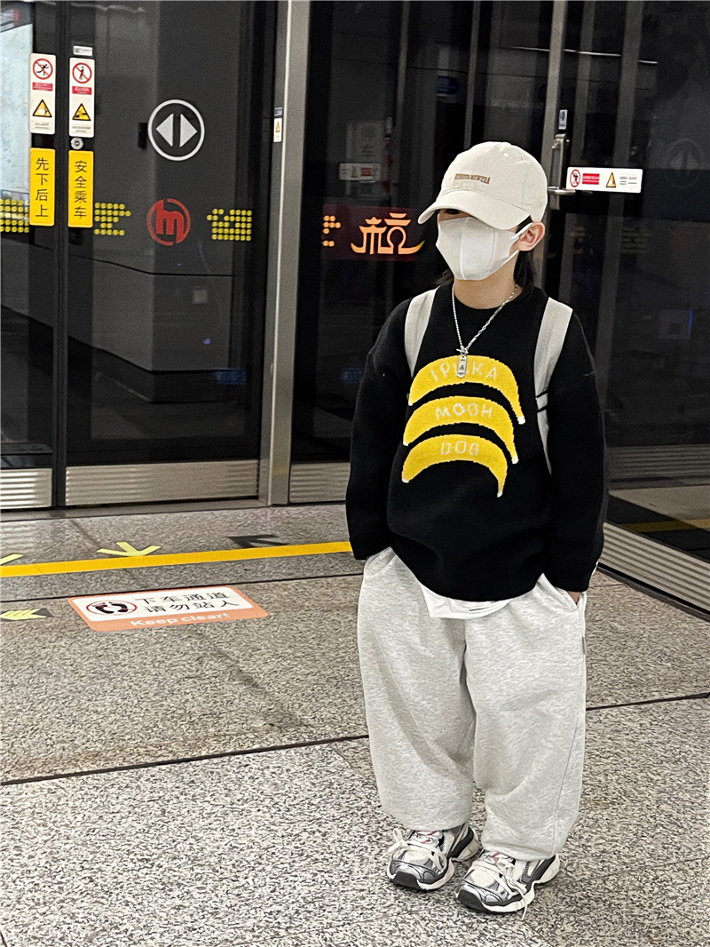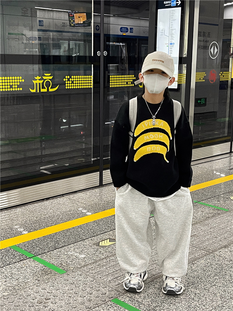 Baoduo 아동복 소년 가을과 겨울 스웨터 2023 새로운 아기 가을 라운드 넥 풀오버 겨울 스웨터