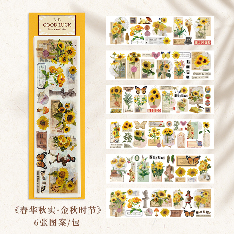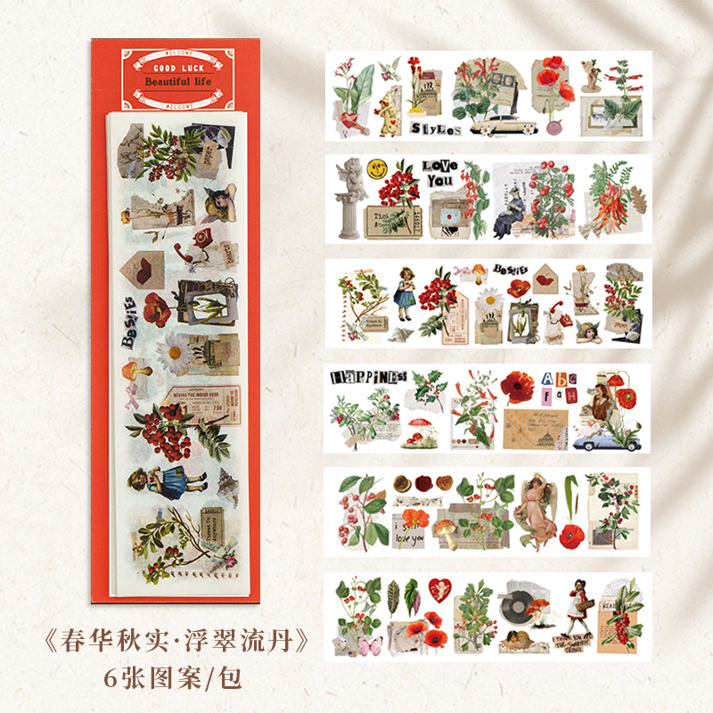 분할 된 손 계정 테이프 스티커 Chunhua Qiushi 만화 캐릭터 손 계정 풍경 스티커 장식 및 종이 스티커 ST스토어 가기