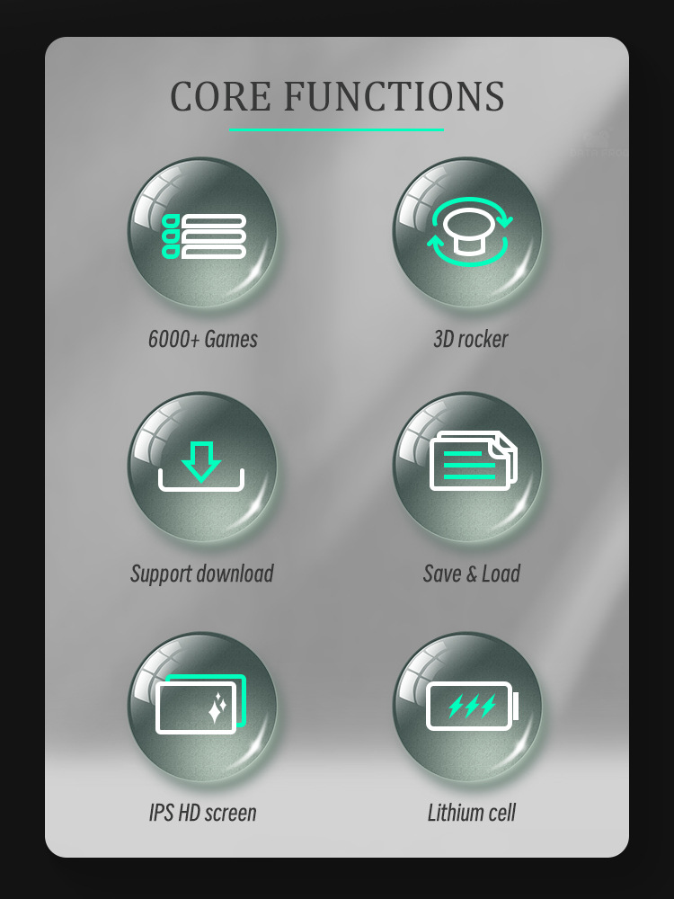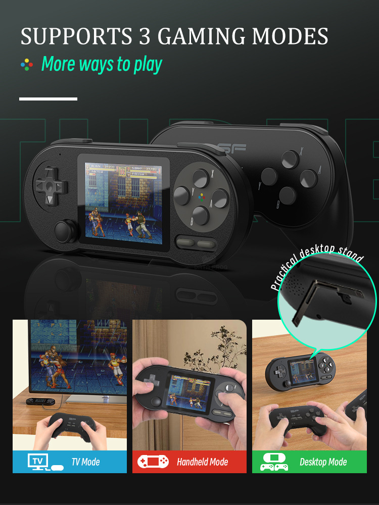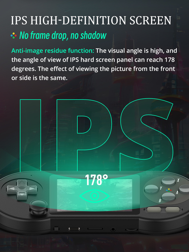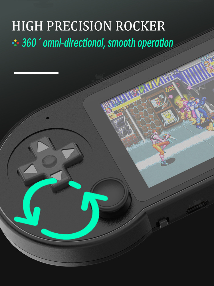 这款掌上游戏机拥有超过6000款精选经典游戏,IPS高清流畅屏幕搭配高精度摇杆,支持下载收藏游戏,支持7种模拟器,游戏覆盖面广,运行内存:1G; 配置内存卡容量:16G