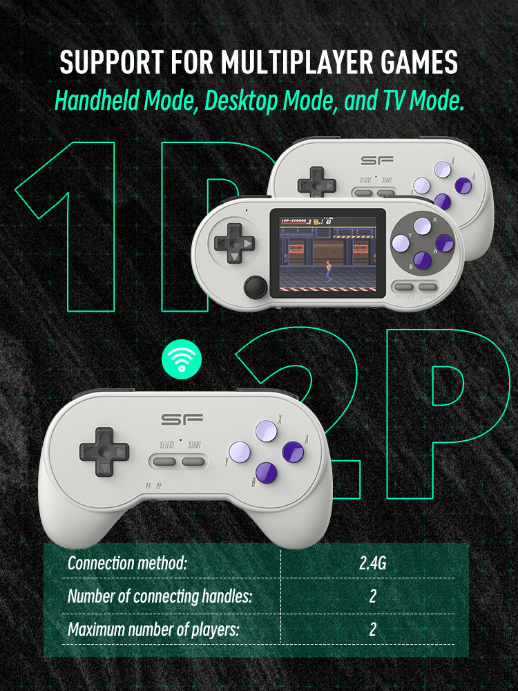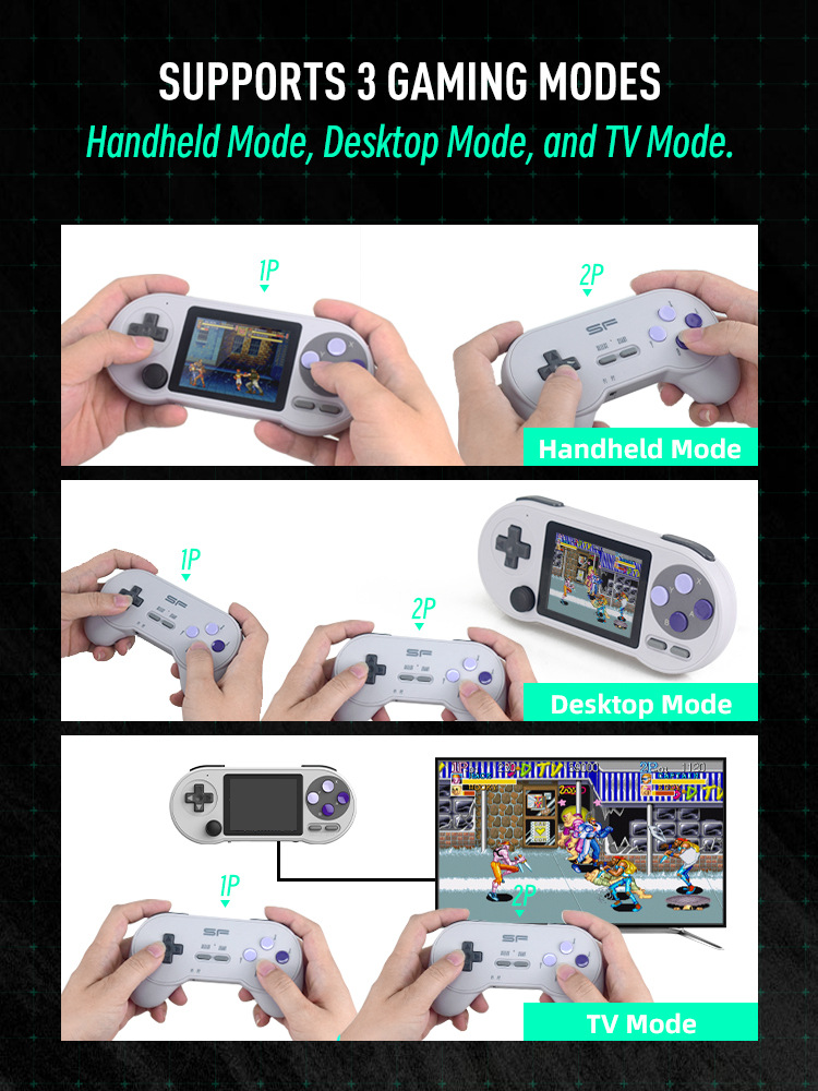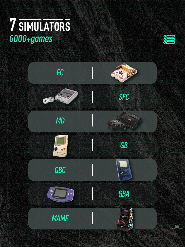 内置的7个游戏模拟器分别是:FC/SFC/MD/GB/GBC/GBA/MAME。并内置了部分试玩游戏,玩家可以按照我们提供的视频教程,自行游玩S7掌机机中的免费ROM。可配双手柄进行游戏