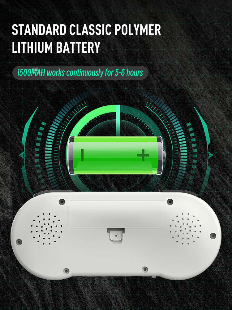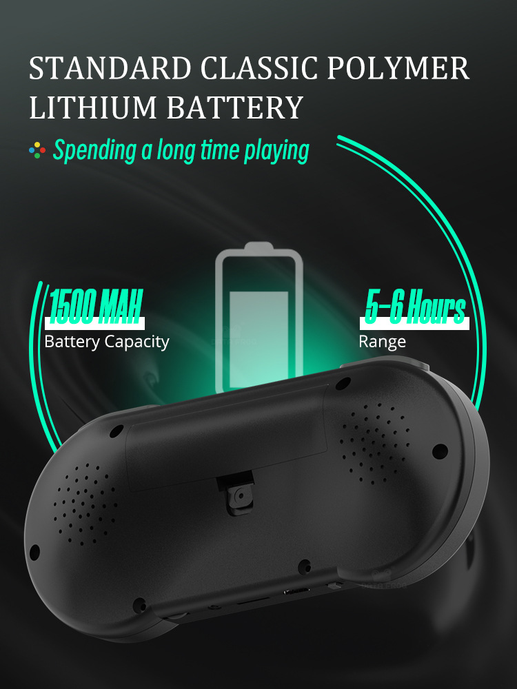 内置1500mAh大容量锂电池可充电,充满电支持5-6小时的游戏时间。出差、旅行或露营时,您无需担心电量不足。(注意:首次使用前请将电池充满电。)