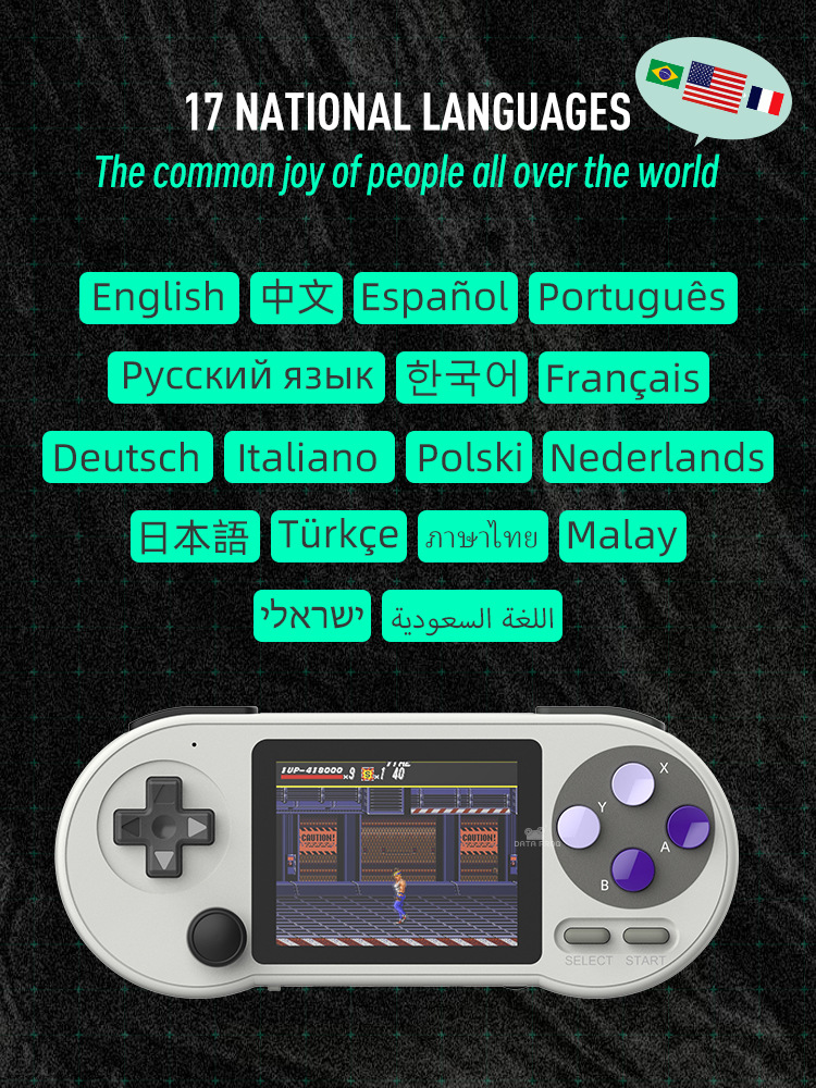 游戏机的菜单页面新增了17种系统语言。注意:游戏的语言仍然是英文哦!