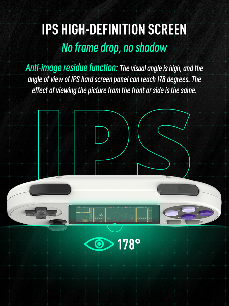 S7掌上游戏机采用3英寸高清显示屏,您可以通过AV线将掌机连接到电视,享受生动有趣的视频游戏。