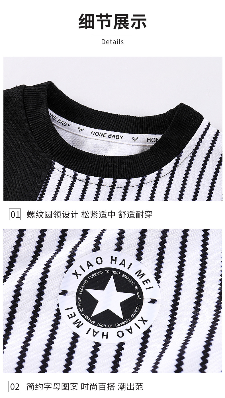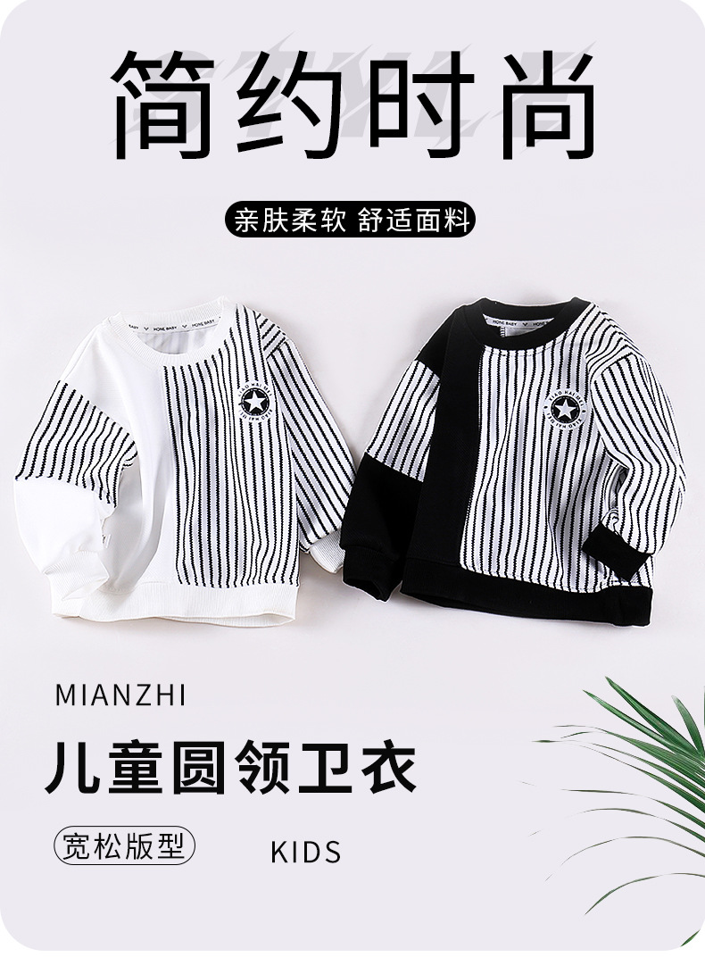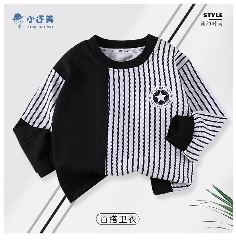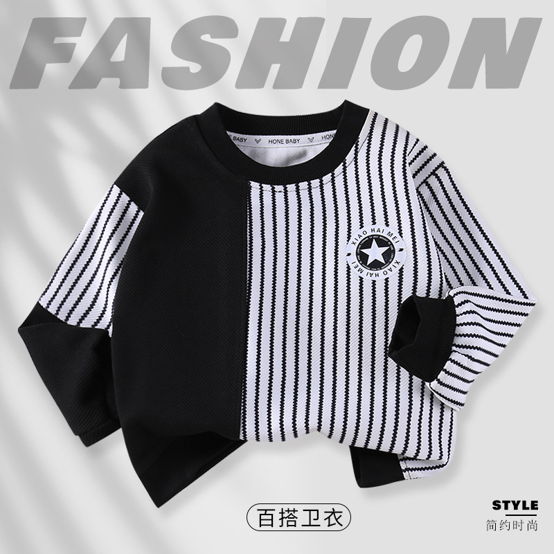 2024 봄, 가을 어린이 운동복 소년 작은 신선한 탑 소년 라운드 넥 다목적 스트라이프 겉옷 캐주얼 아동 의류스토어 가기