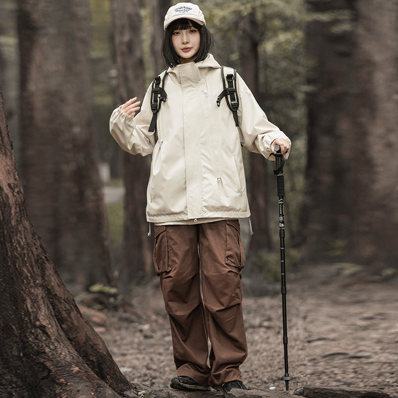 2024 버드 홈 충전 의류 남녀 싱글 레이어 커플 야외 느슨한 방수 재킷 작업 재킷 여성 윈드 브레이커