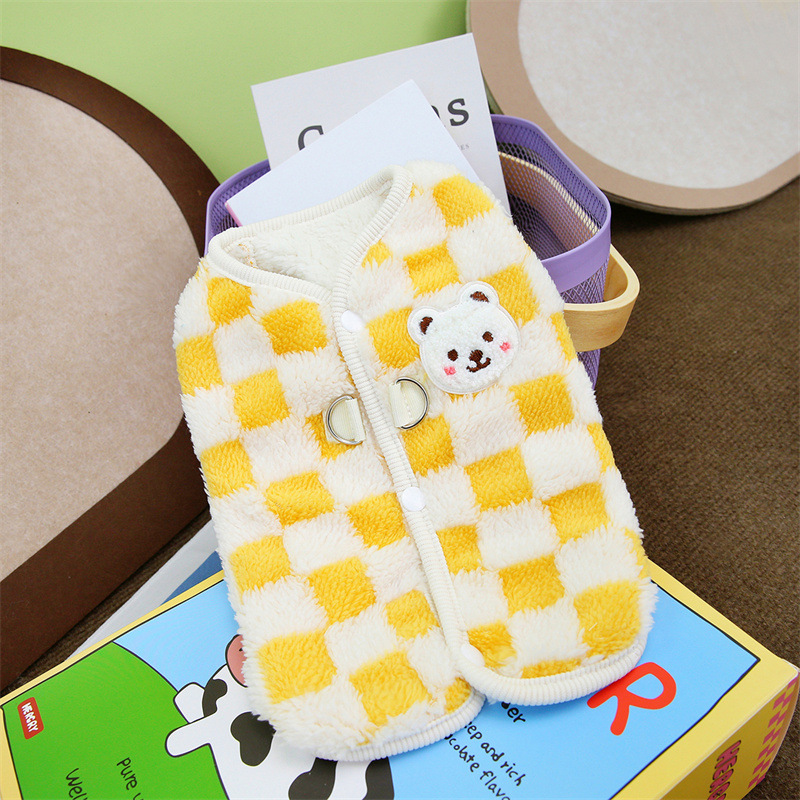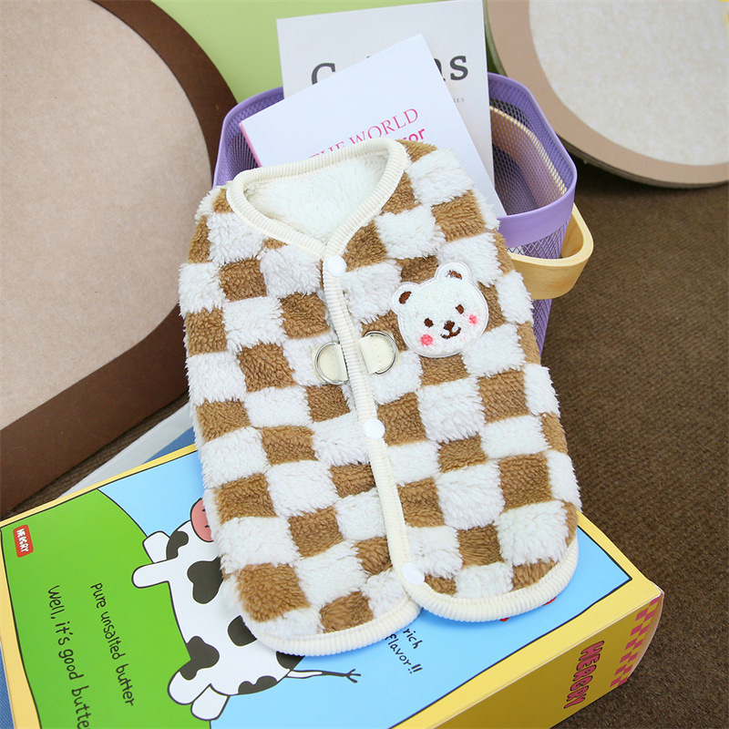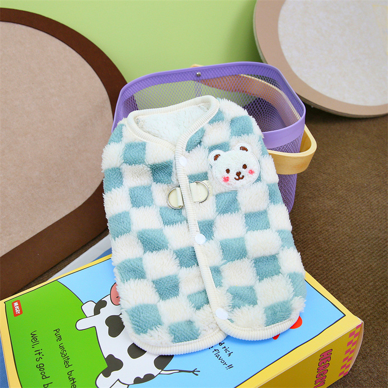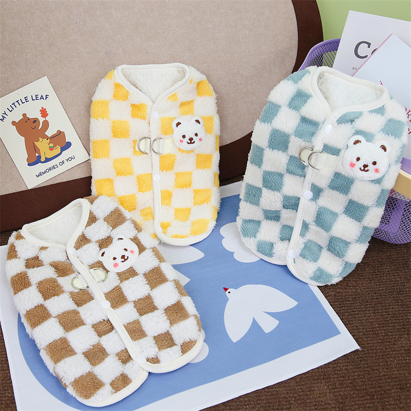 애완견 옷 가을 겨울 체크무늬 벨벳 조끼 끈 달린 겨울옷 테디 소형견 의류 보온스토어 가기