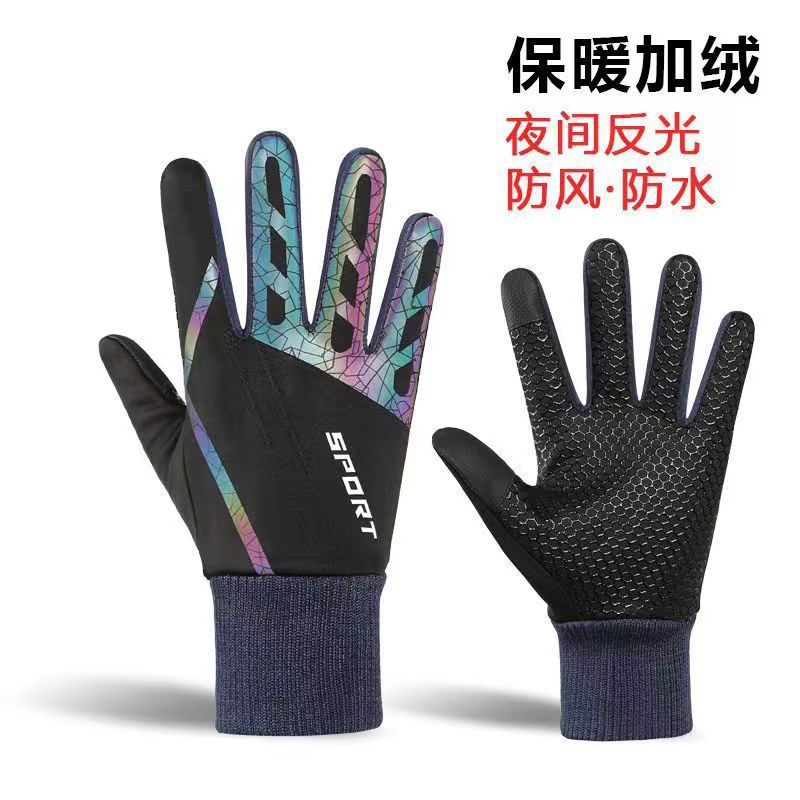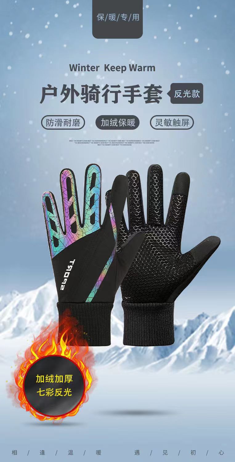 기모 따뜻한 반사 테이크 아웃 도어 장갑 터치 스크린 스키 오토바이 승마 겨울 남자 장갑