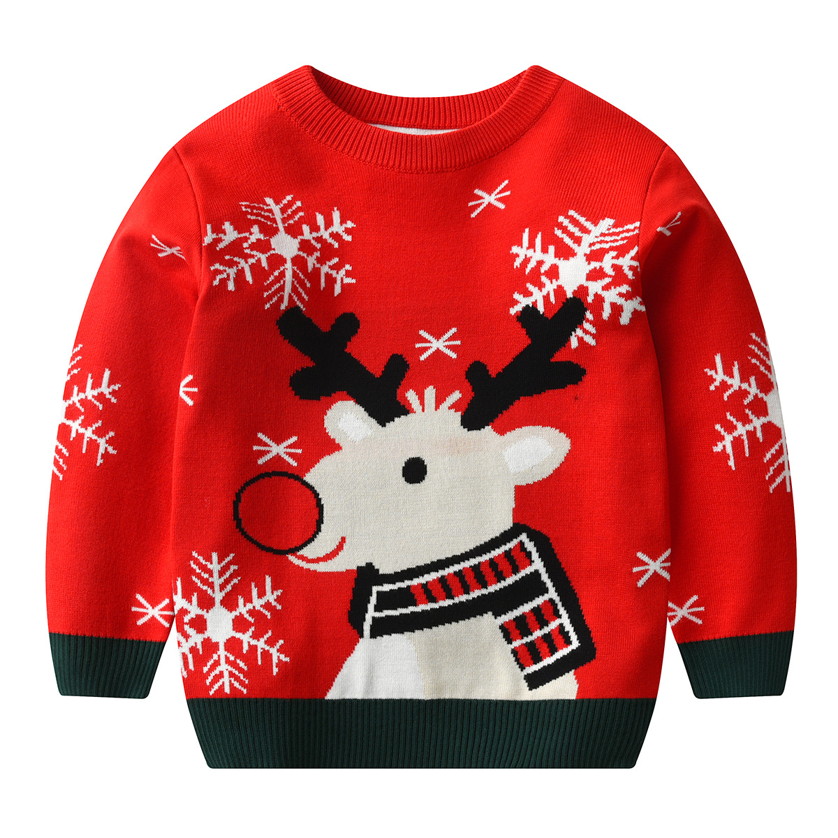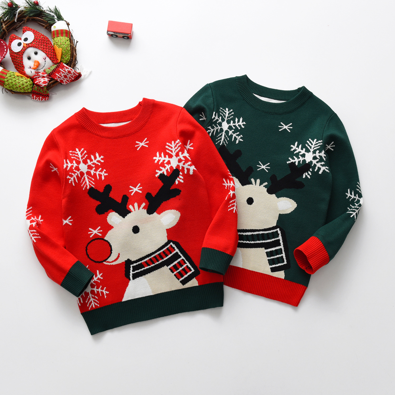 공장 도매 새로운 가을과 겨울 유럽과 미국 어린이 풀오버 스웨터 크리스마스 스카프 사슴 소년과 소녀 아기 풀오버 양모