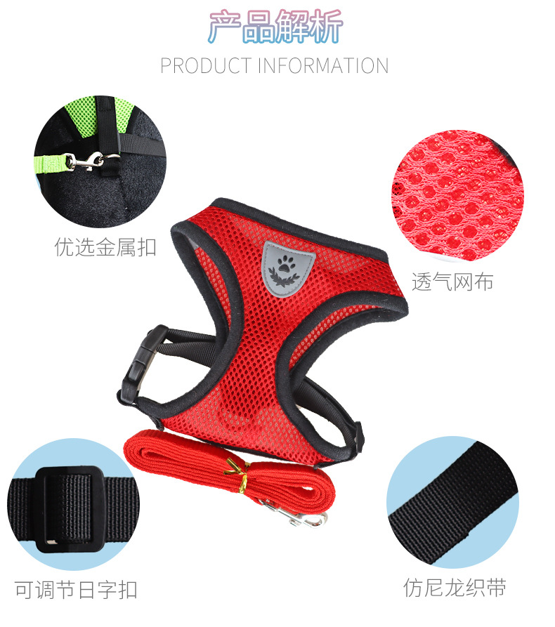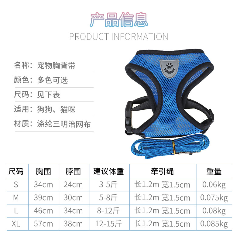 애완 동물 가슴 스트랩 개 고양이 메쉬 견인 로프 세트 아웃 조끼 안티 오프 개 산책 로프 공장 콘센트스토어 가기
