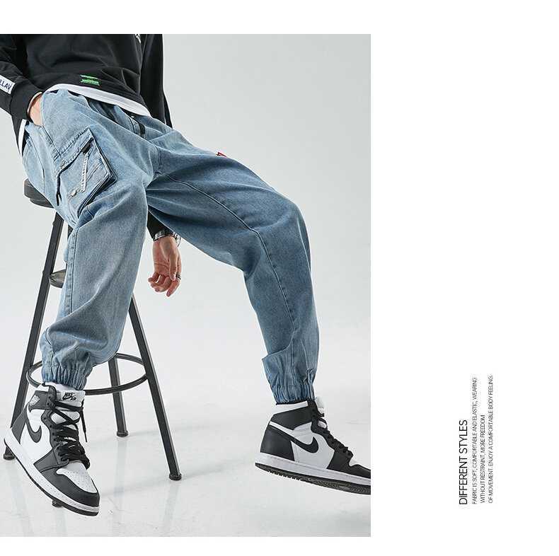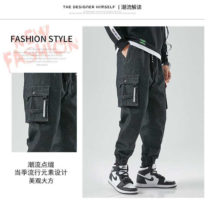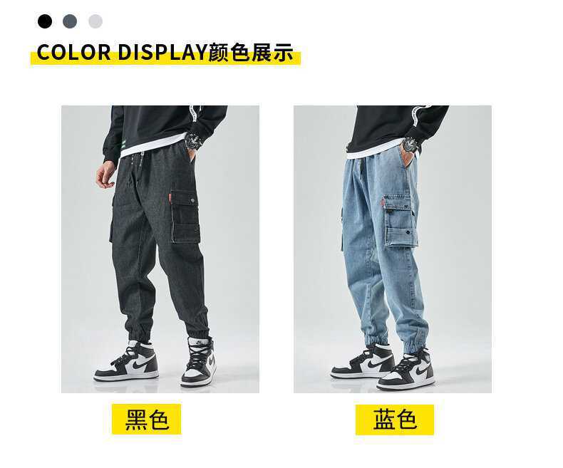 크로스 보더 남성 바지 봄과 가을 느슨한 캐주얼 긴 바지 뚱뚱한 작업복 청바지 발목 바지 플러스 사이즈 바지스토어 가기