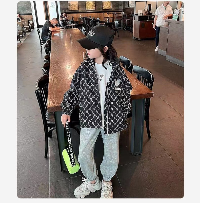 여아 가을 재킷 코트 2023 새로운 스타일 중대형 어린이 캐주얼 루즈한 탑 한국 스타일 소녀 후드 가디건 유행