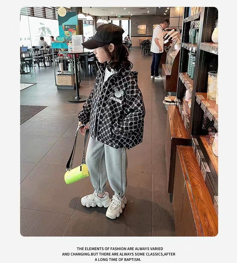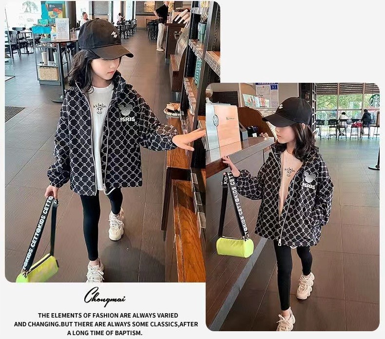 여아 가을 재킷 코트 2023 새로운 스타일 중대형 어린이 캐주얼 루즈한 탑 한국 스타일 소녀 후드 가디건 유행스토어 가기