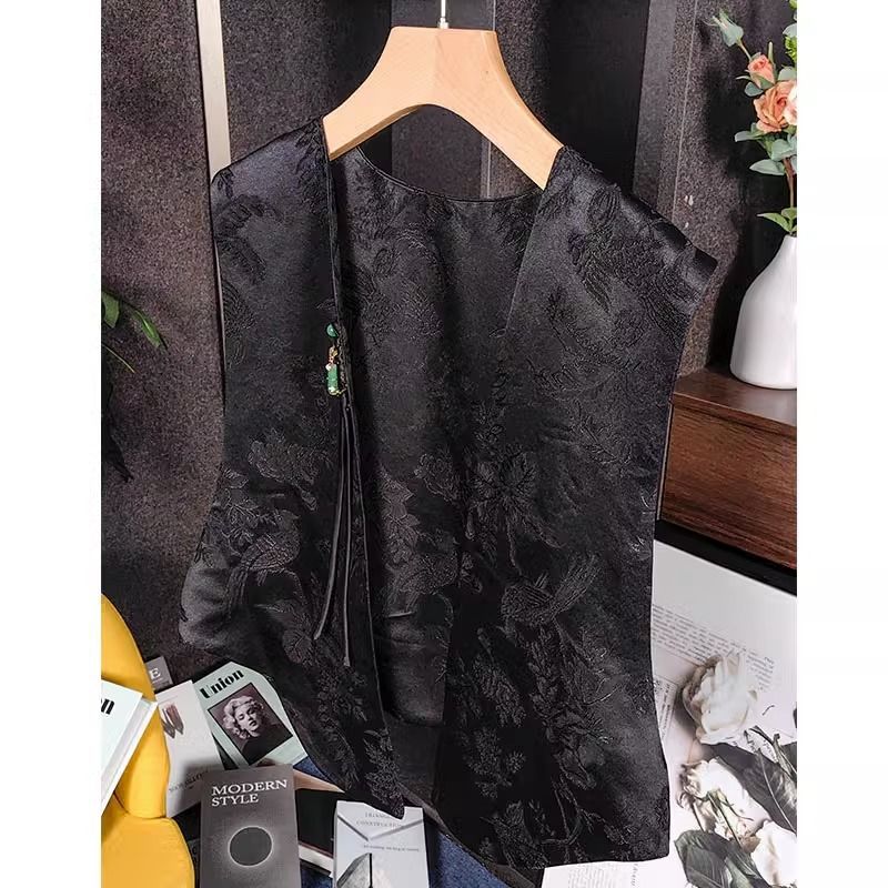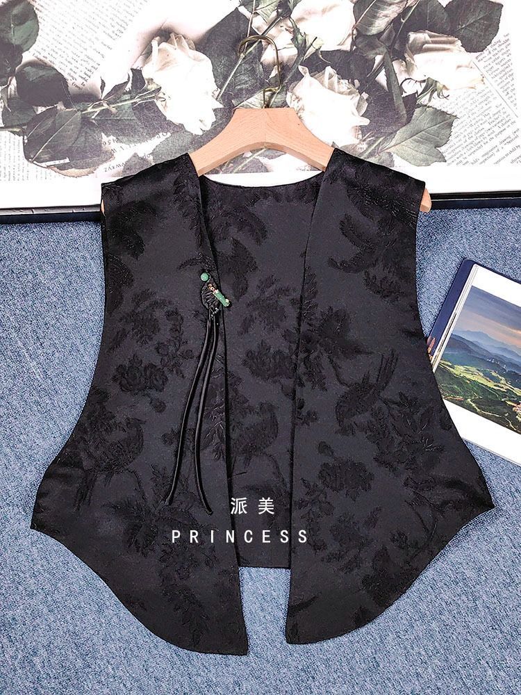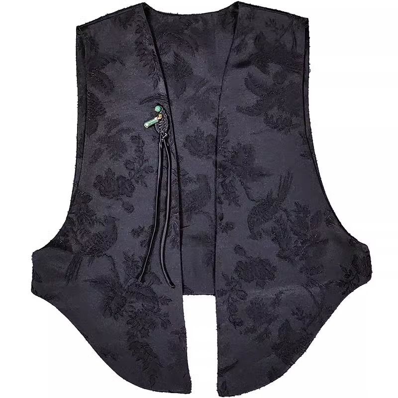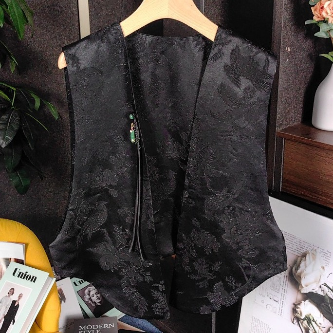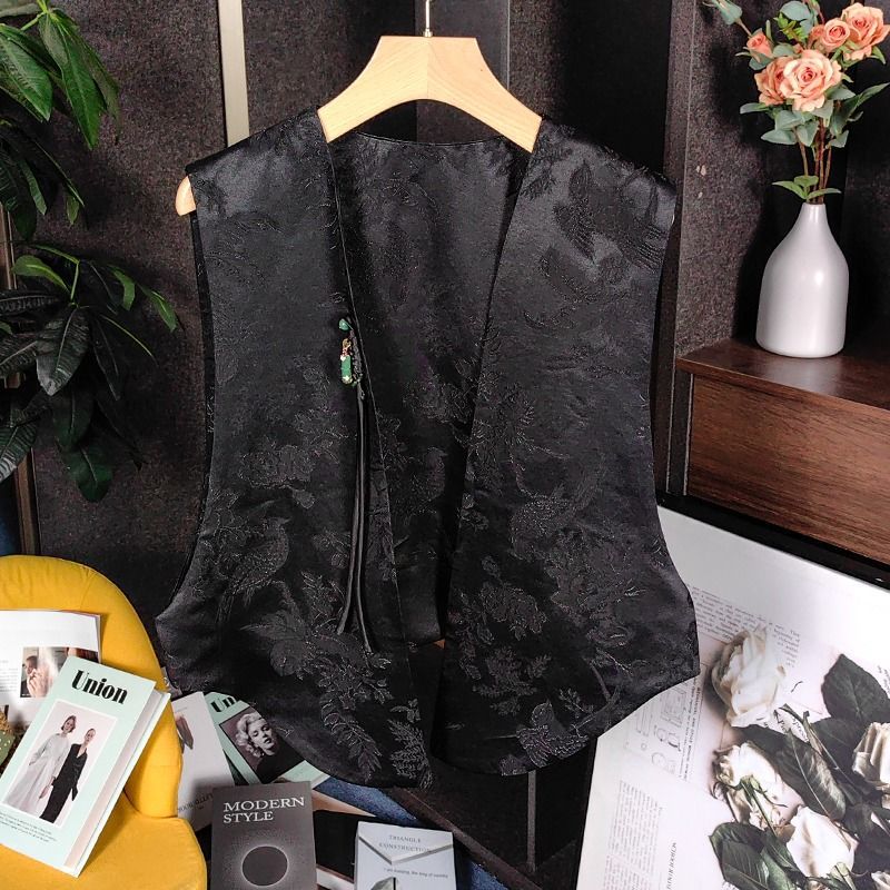 비싼 새로운 중국 스타일 하이 엔드 복고풍 국가 스타일 버클 자카드 조끼 여성의 플러스 사이즈 하이 엔드 겉옷스토어 가기