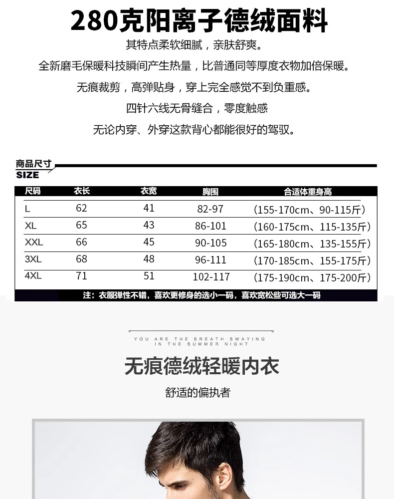 280g 가을 겨울 독일 벨벳 따뜻한 조끼 남성용 플러스 벨벳 양이온 속옷 양면 기모 바닥 셔츠 공장 타이트스토어 가기