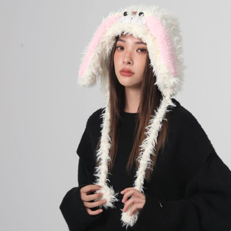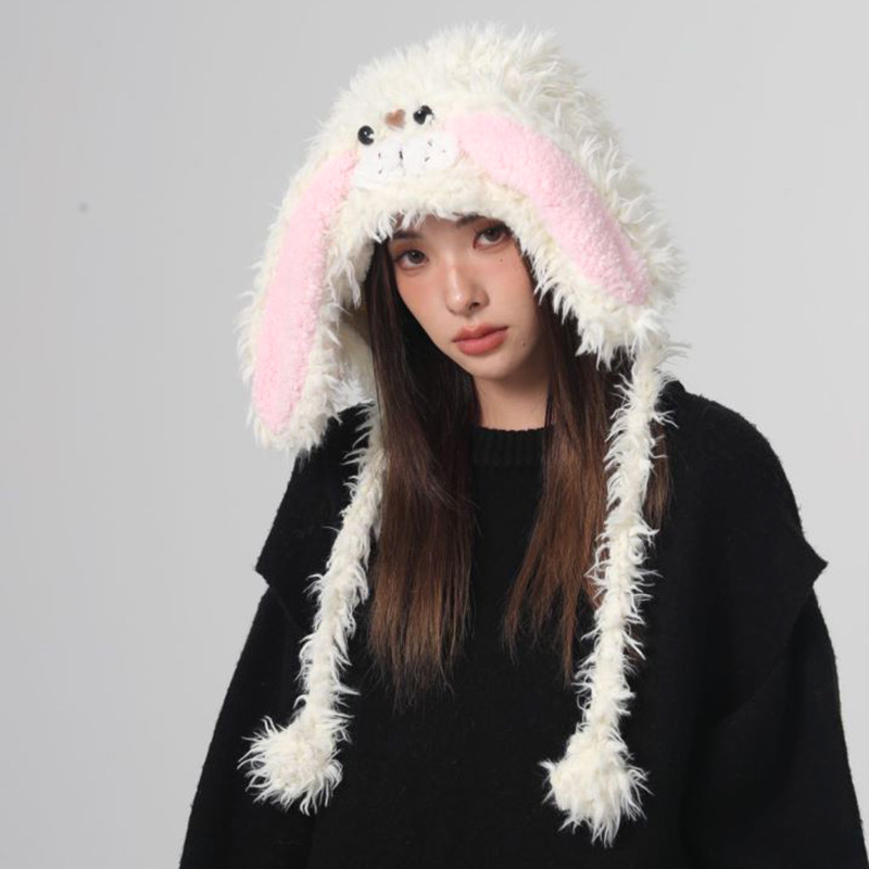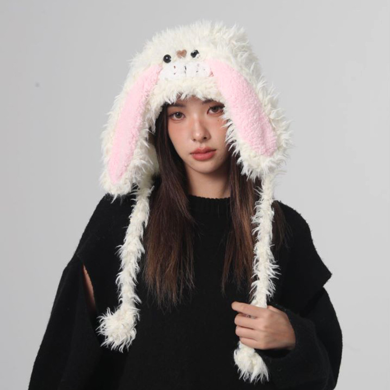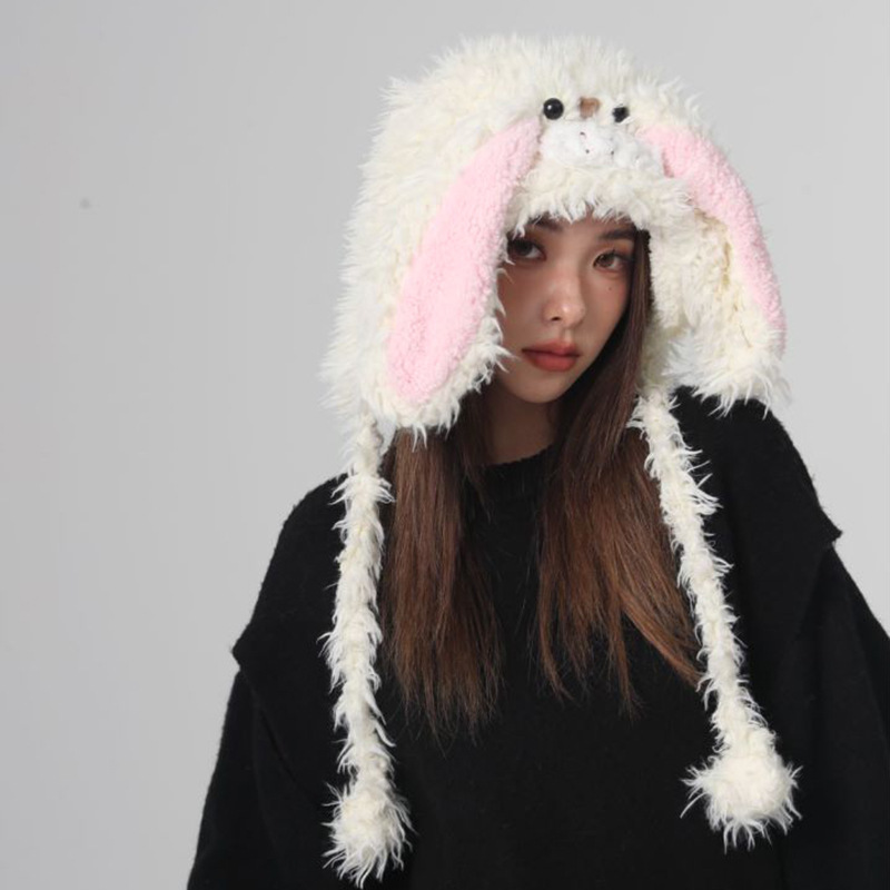 인터넷 연예인 같은 스타일 튀김 큰 귀 토끼 모자 어린이의 귀여운 달콤한 소녀 겨울 귀 보호 모자 만화 따뜻한 양모 모자