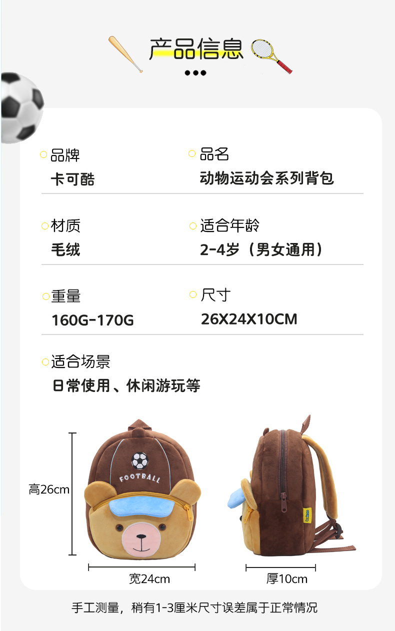 귀여운 새로운 동물 게임 소년과 소녀 봉제 어린이 배낭 유치원 배낭 공장 아울렛