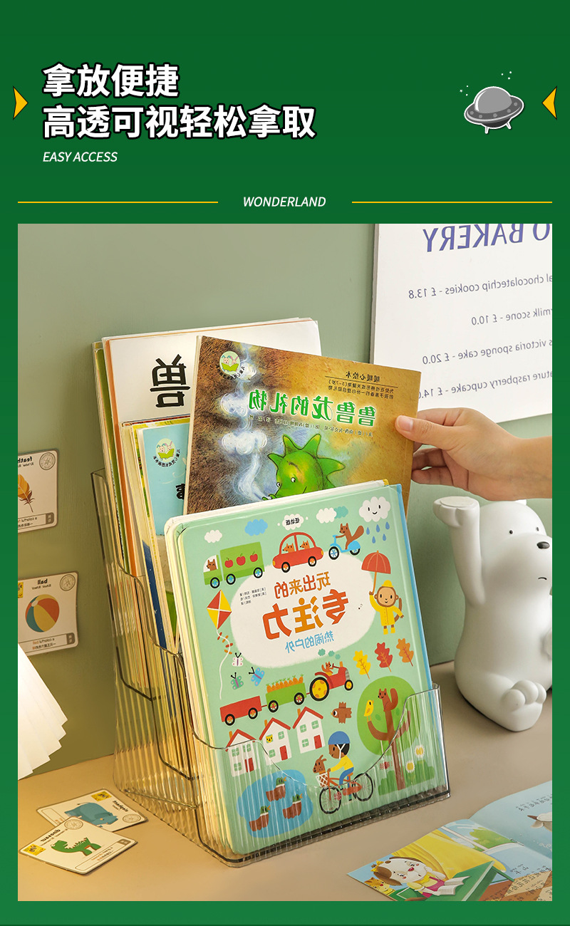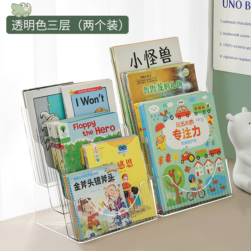 데스크탑 책장 어린이 그림책 보관 랙 책상 침대 옆 랙 책 상자 작은 아크릴 투명