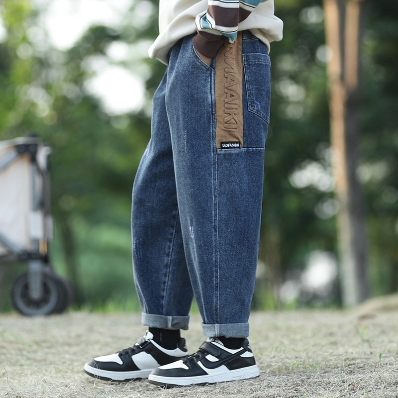 소년 청바지 가을 스트레치 모든 매치 대형 어린이 잘 생긴 캐주얼 바지 소년 봄과 가을 느슨한 바지스토어 가기