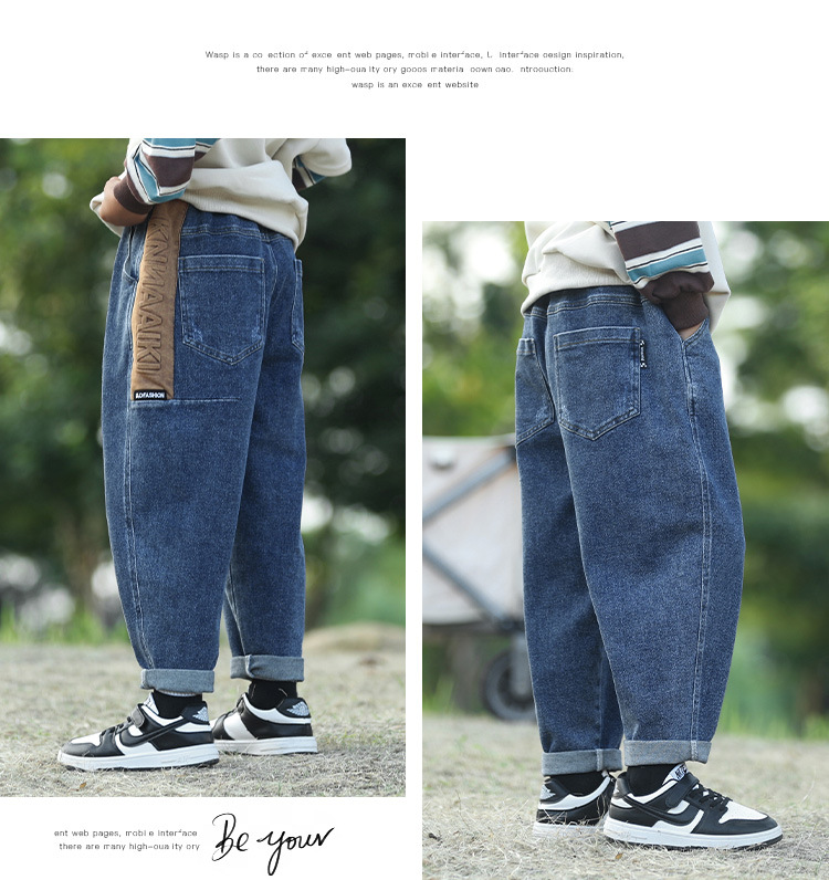 소년 청바지 가을 스트레치 모든 매치 대형 어린이 잘 생긴 캐주얼 바지 소년 봄과 가을 느슨한 바지