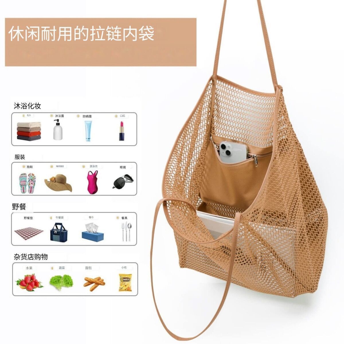 메쉬 숄더 핸드백 휴대용 워시 수영복 보관 가방 비치 핸드백 캐주얼 숄더 쇼핑백