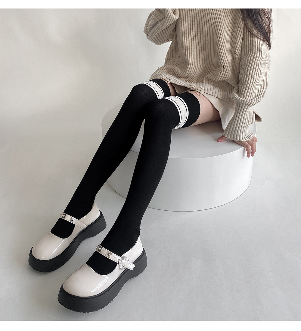 무릎 위 허벅지 양말 여성용 가을과 겨울면 양말 압력 슬리밍 긴 하이 양말 jk 학업 스타일 간단한 봄과 가을 허벅지 양말