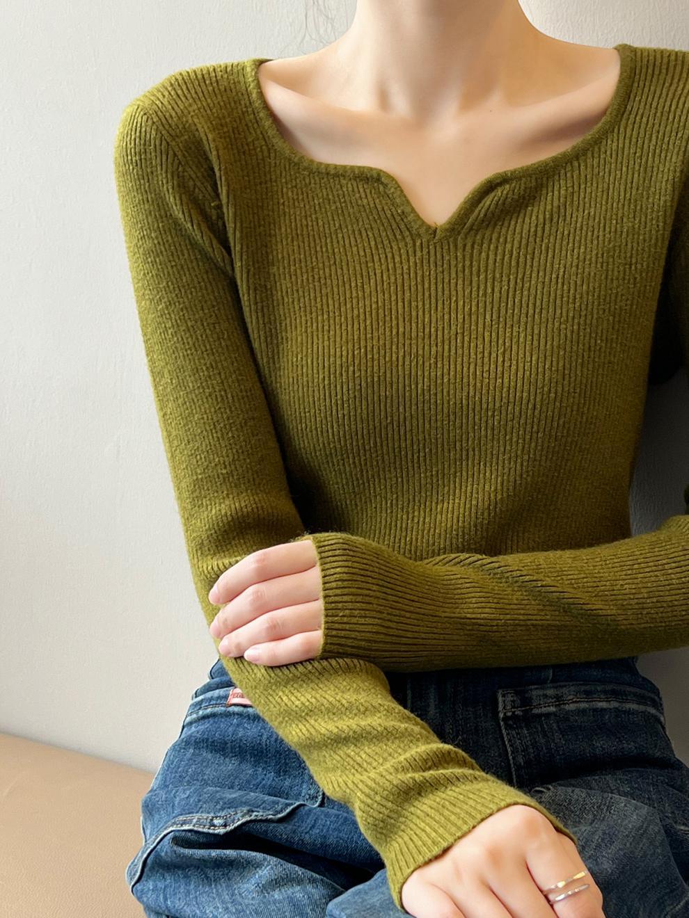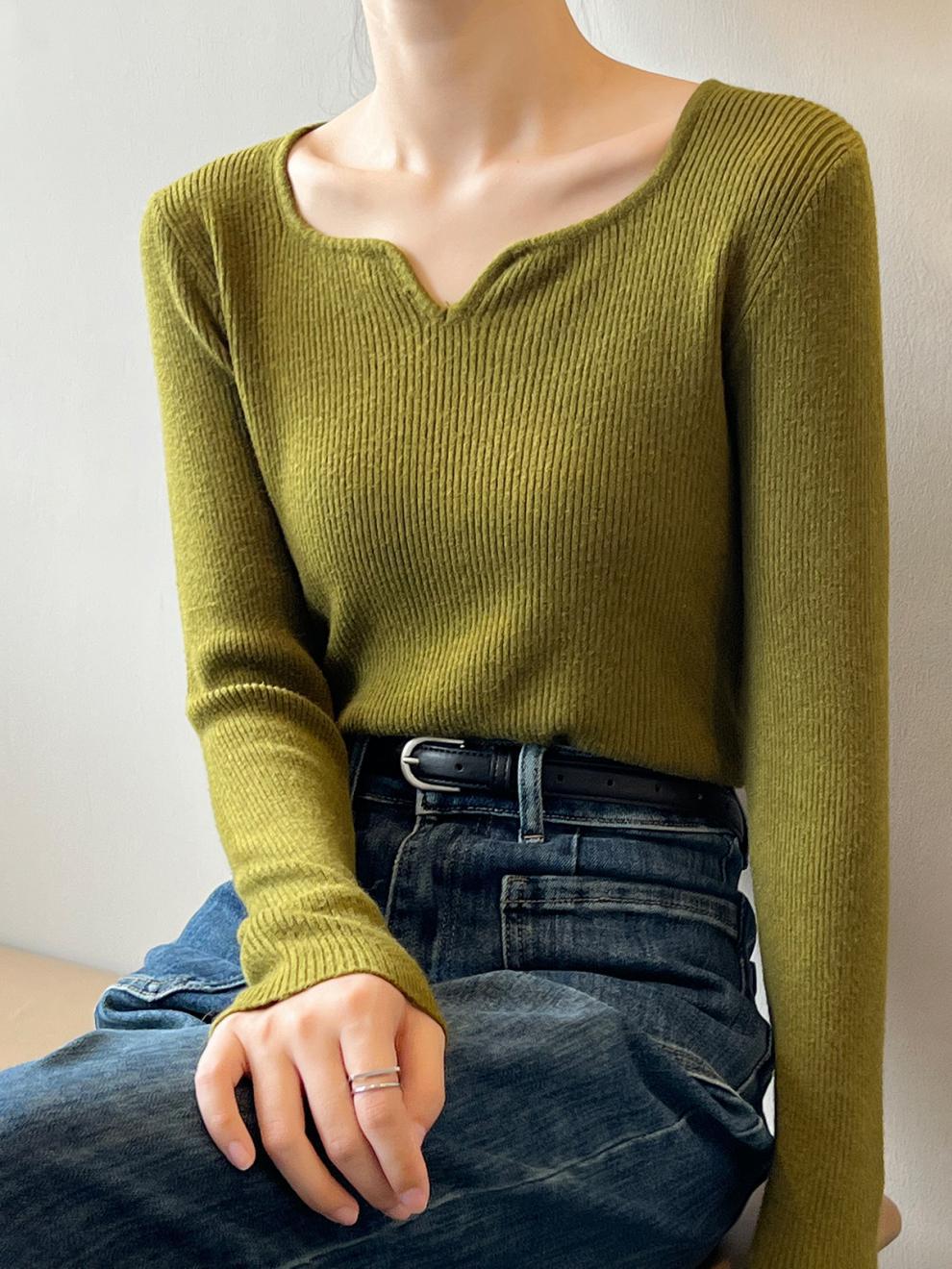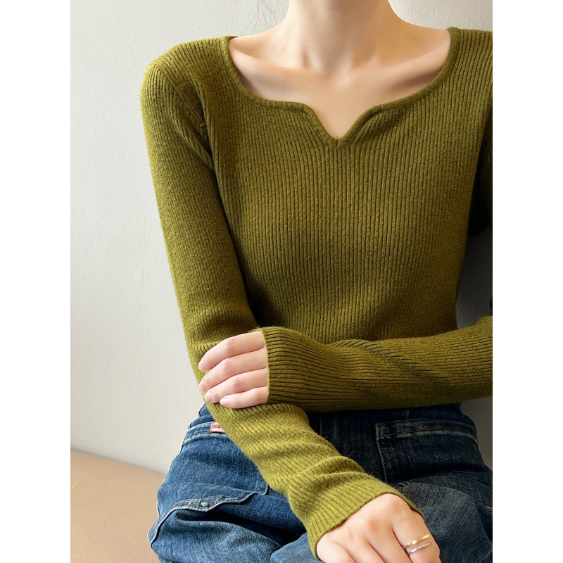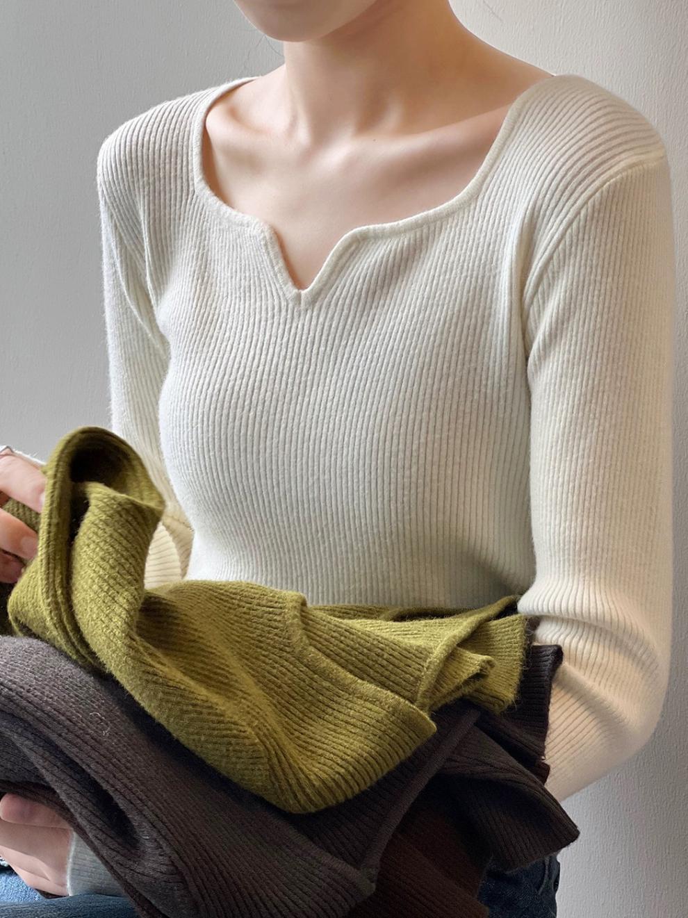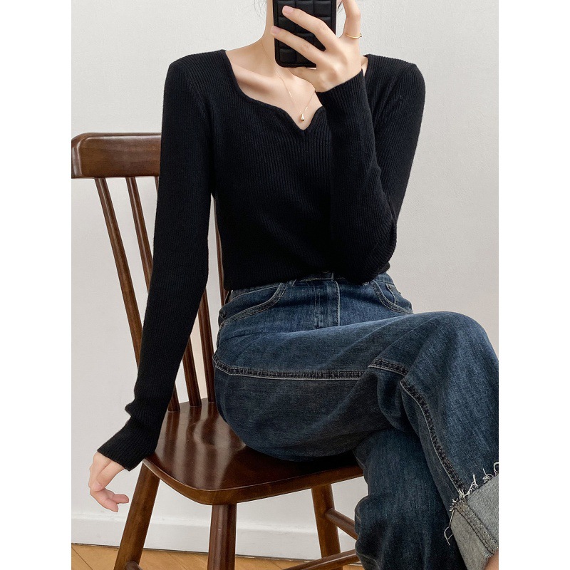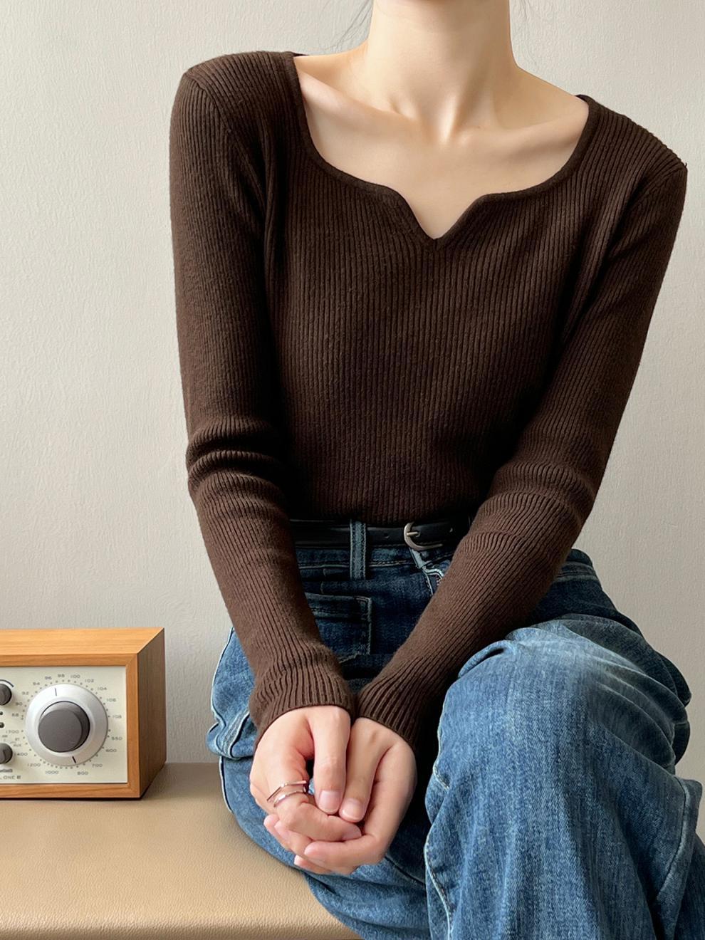 프랑스 복고풍 V-넥 니트 베이스 셔츠 여성용 2023 봄과 가을 새로운 틈새 인테리어 슬림핏 슬리밍 긴팔 탑