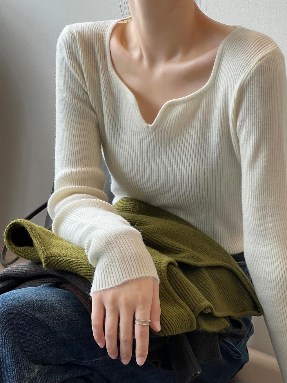 프랑스 복고풍 V-넥 니트 베이스 셔츠 여성용 2023 봄과 가을 새로운 틈새 인테리어 슬림핏 슬리밍 긴팔 탑스토어 가기