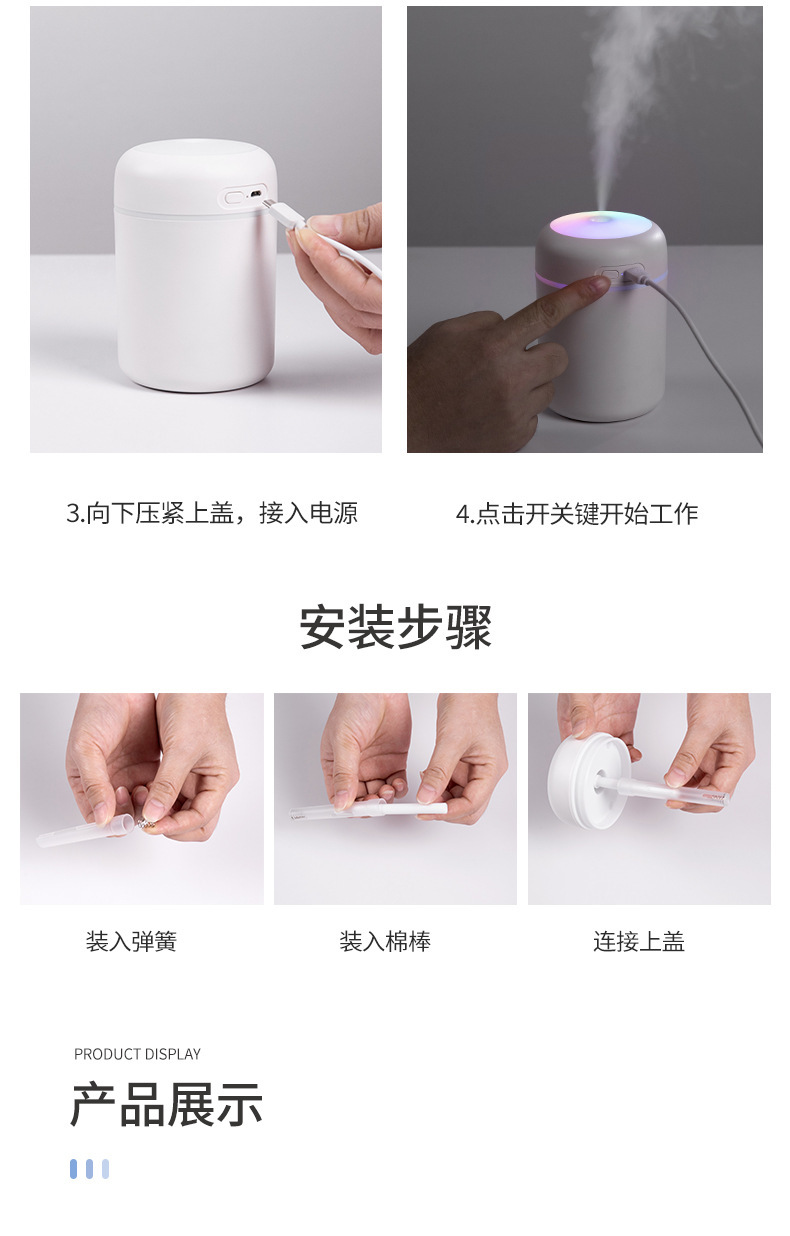 水箱容量:300ml 喷雾量:25-35ml/h 定时关机:4小时/6小时(间隙喷雾)