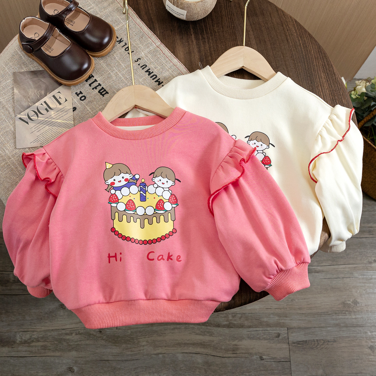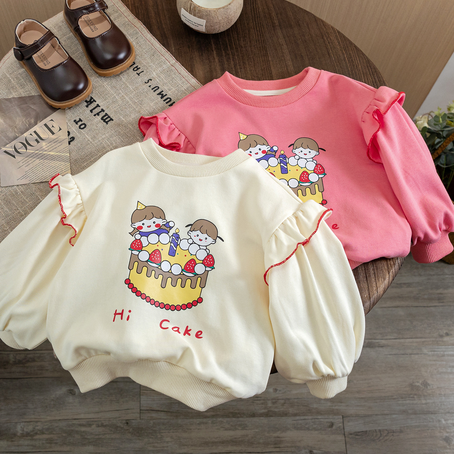 新款童装女童卫衣秋装新款卡通圆领上衣女宝宝可爱宽松春秋套头衫
