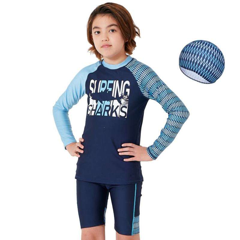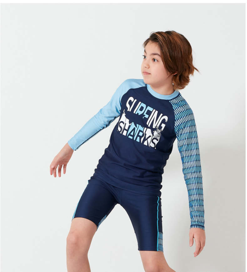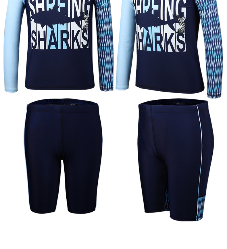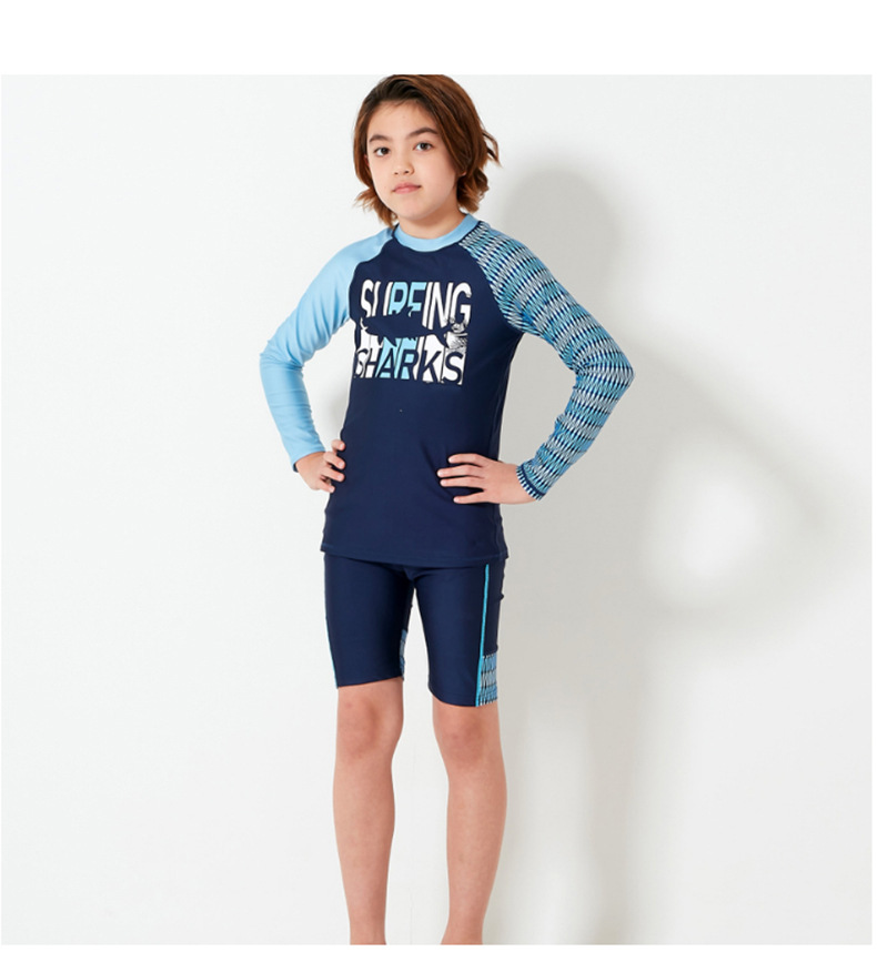 어린이 소년 소년 자외선 차단제 통기성 속건 소년 '온천 수영복 분할 긴 소매 수영 5 점 세트