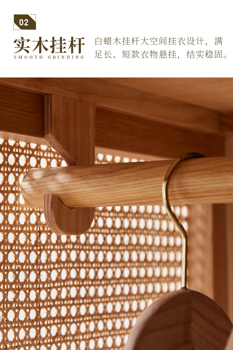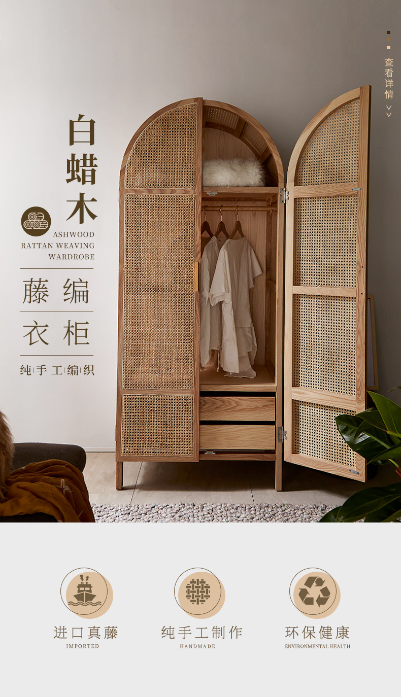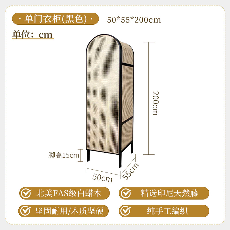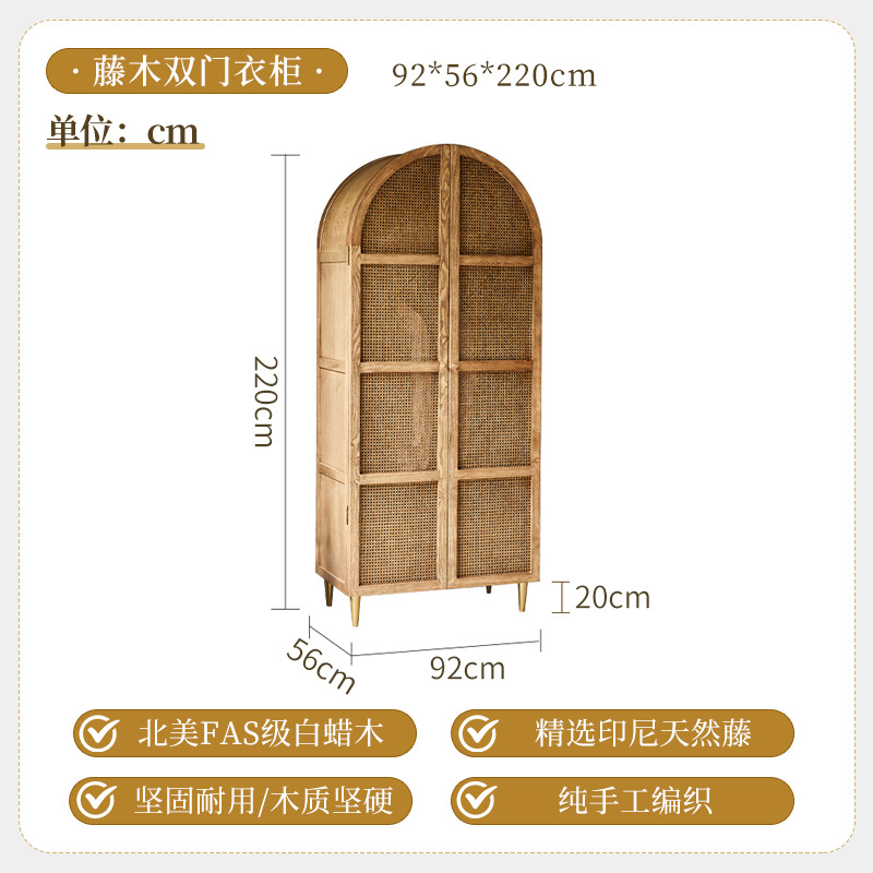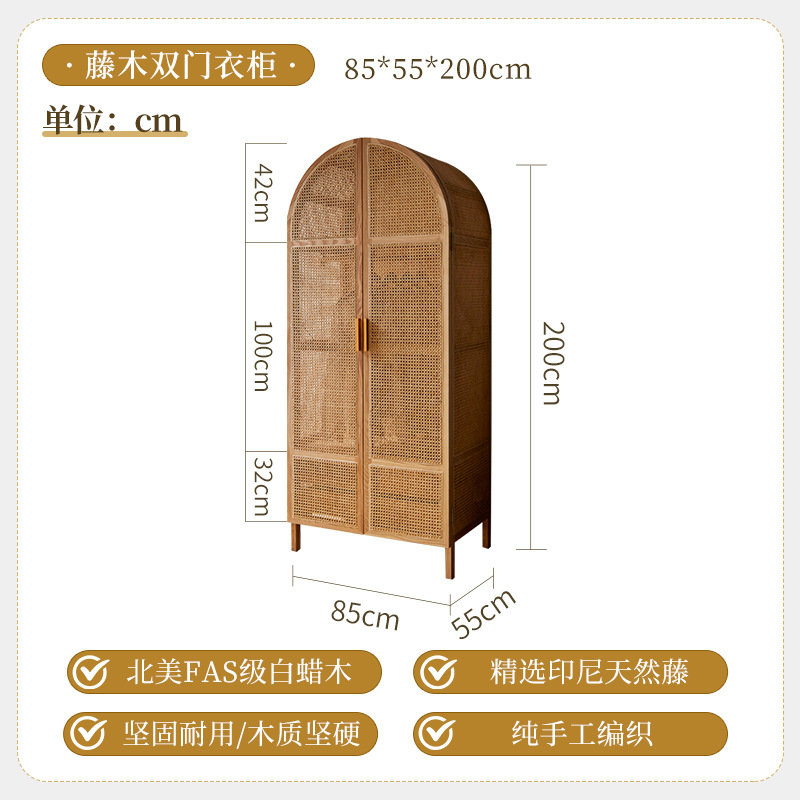 간단한 등나무 아트 캐비닛 현대 간단한 단단한 나무 프레임 옷장 북유럽 홈스테이 침실 대형 옷장