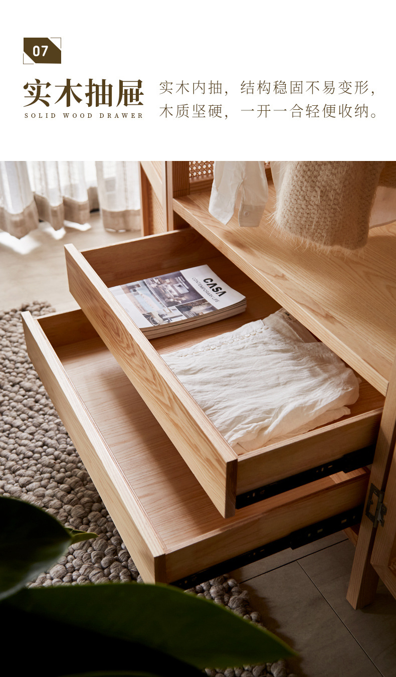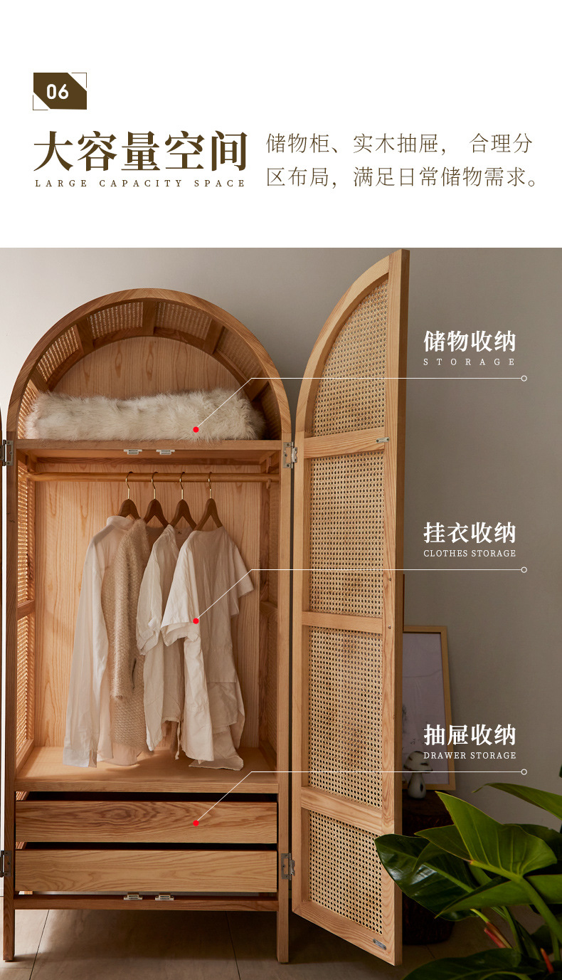 간단한 등나무 아트 캐비닛 현대 간단한 단단한 나무 프레임 옷장 북유럽 홈스테이 침실 대형 옷장스토어 가기