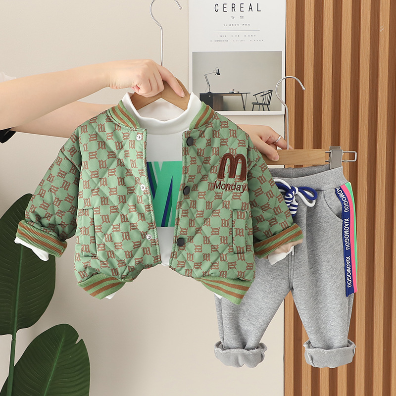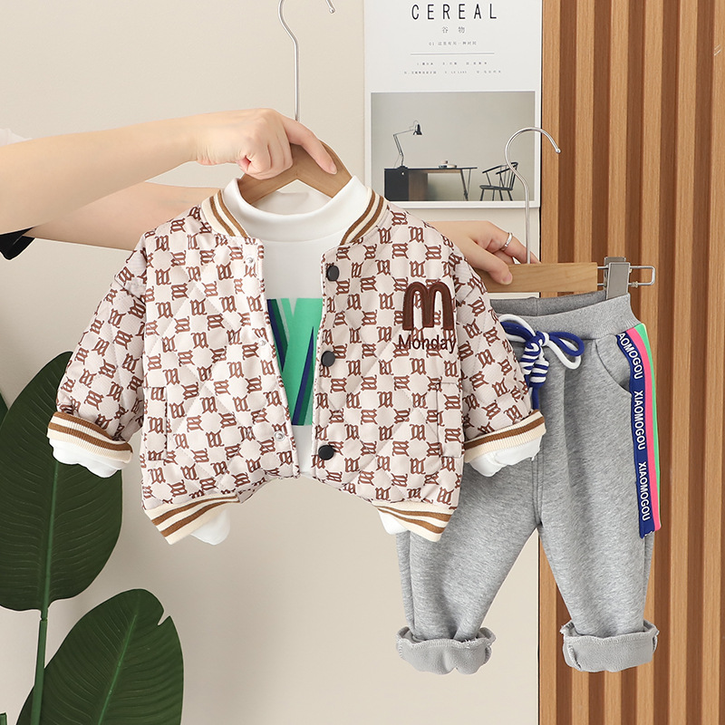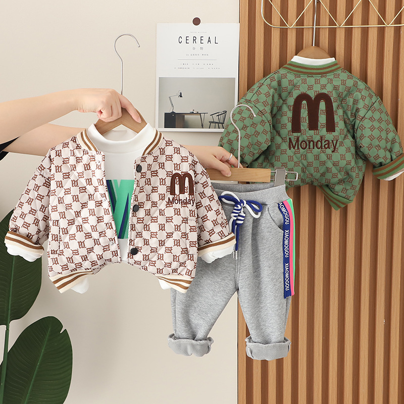 가을 2023 새로운 소년 편지 빵 재킷 긴 소매 3 종 세트 남성 아기 캐주얼 바지 세트 유행스토어 가기