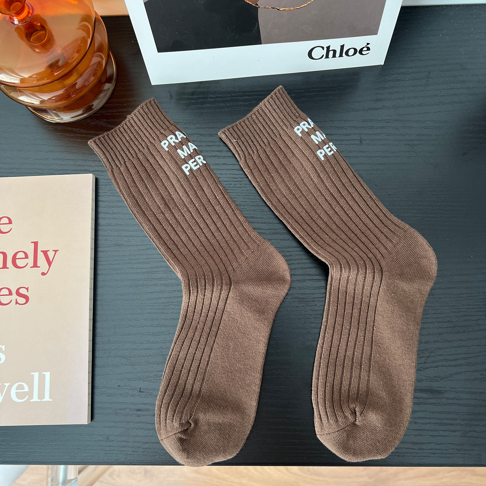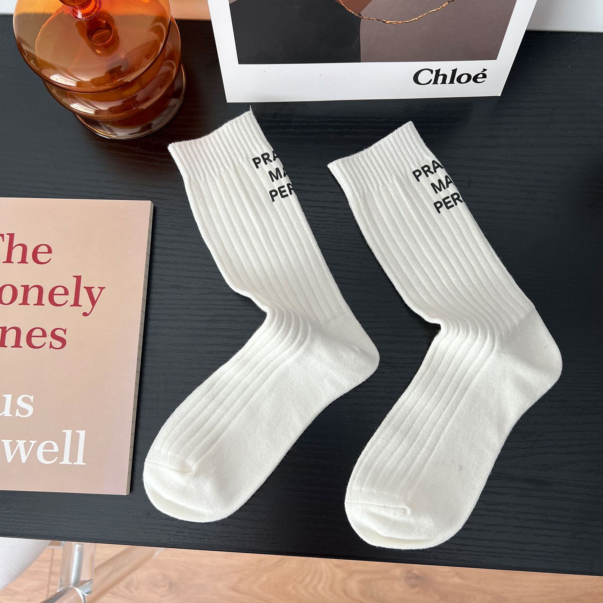 가을과 겨울 새로운 더블 니들 단색 양말 여성용 중간 길이 양말 핫 스탬핑 편지 한국 스타일 패션 모든 매치 스타킹 보석 양말