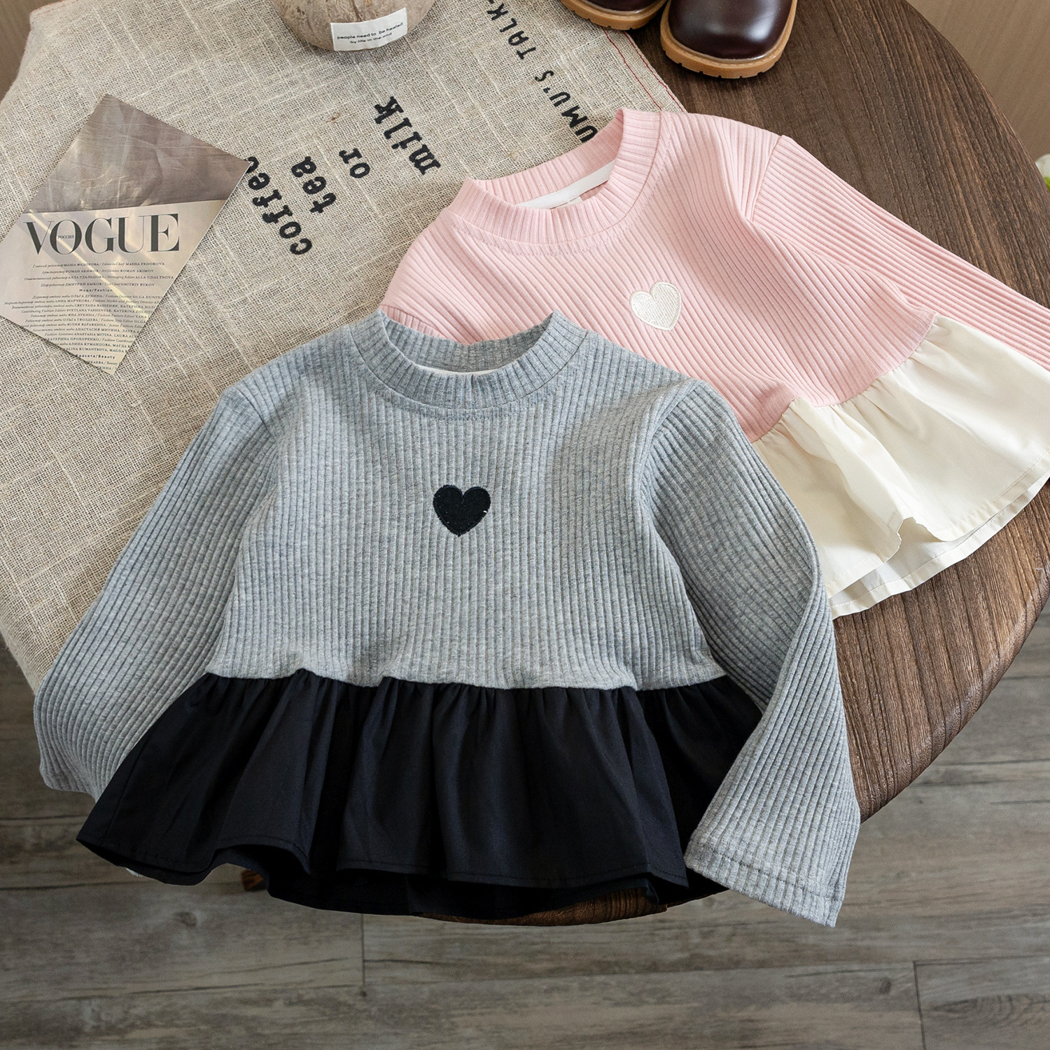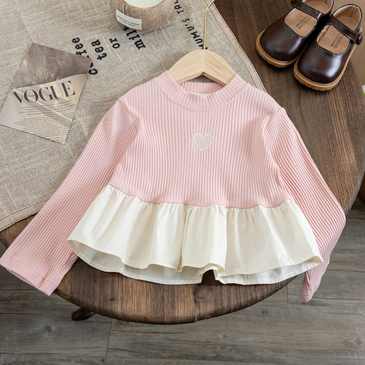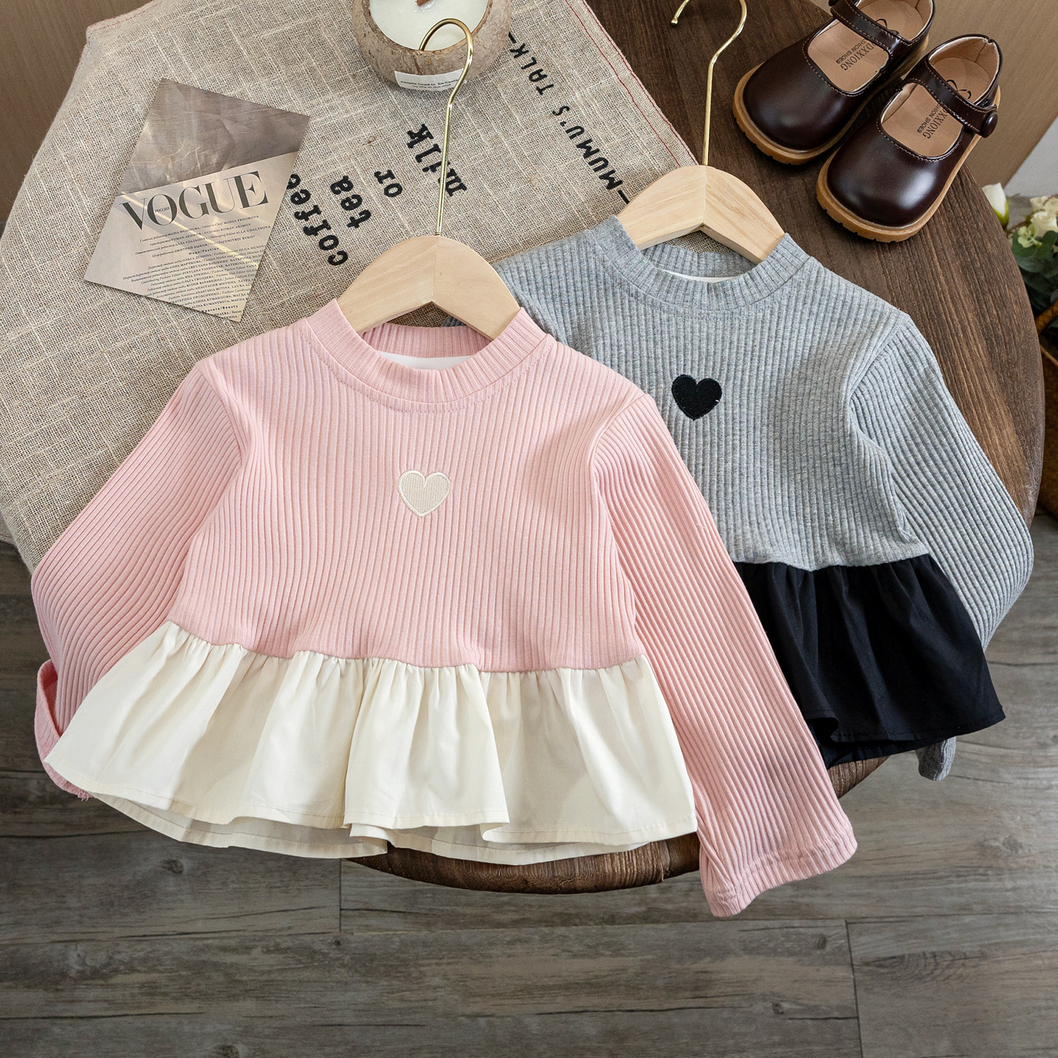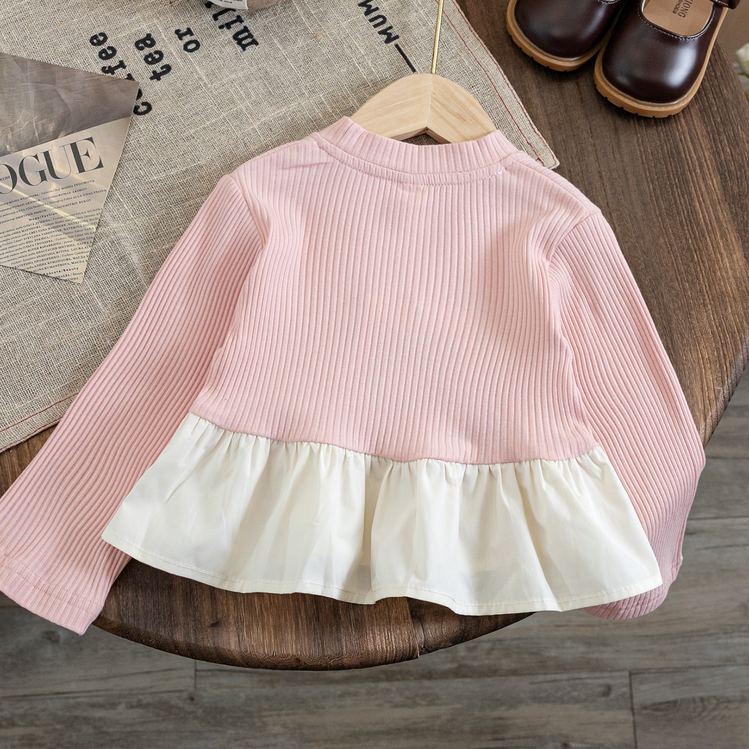 女童秋装打底衫2023新款儿童韩版长袖花边娃娃衫女宝宝春秋季上衣