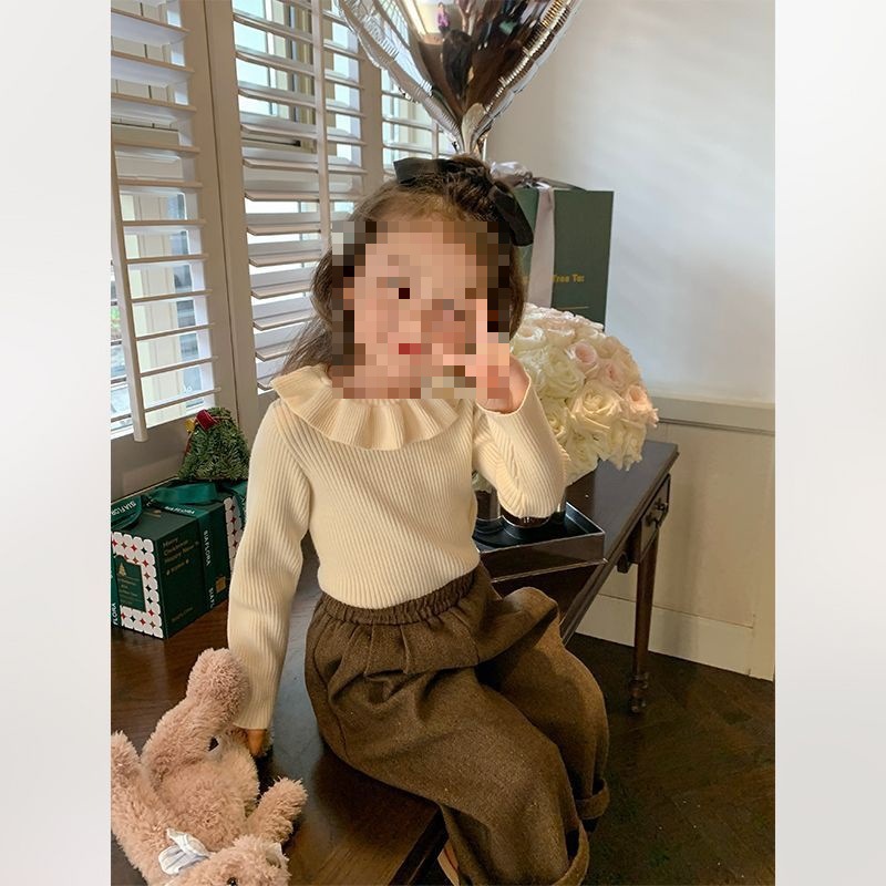 가을과 겨울 새로운 하이 엔드 소녀 패션 레이스 칼라 니트 스웨터 아동베이스 셔츠 0158A019