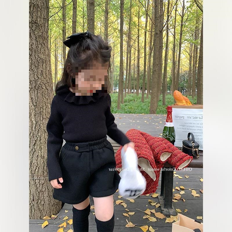 가을과 겨울 새로운 하이 엔드 소녀 패션 레이스 칼라 니트 스웨터 아동베이스 셔츠 0158A019스토어 가기