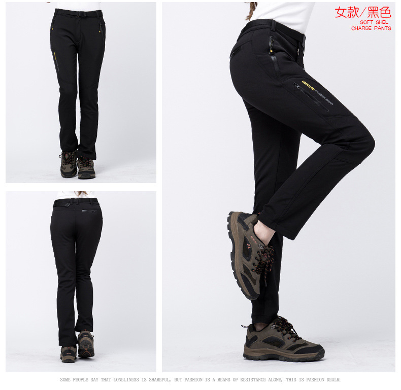 전투 바지 남성 야외 가을과 겨울 방풍 방수 부드러운 쉘 바지 여성용 기모 두꺼운 양털 바지 따뜻한 하이킹 바지