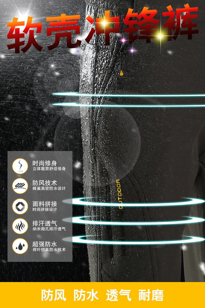 전투 바지 남성 야외 가을과 겨울 방풍 방수 부드러운 쉘 바지 여성용 기모 두꺼운 양털 바지 따뜻한 하이킹 바지스토어 가기
