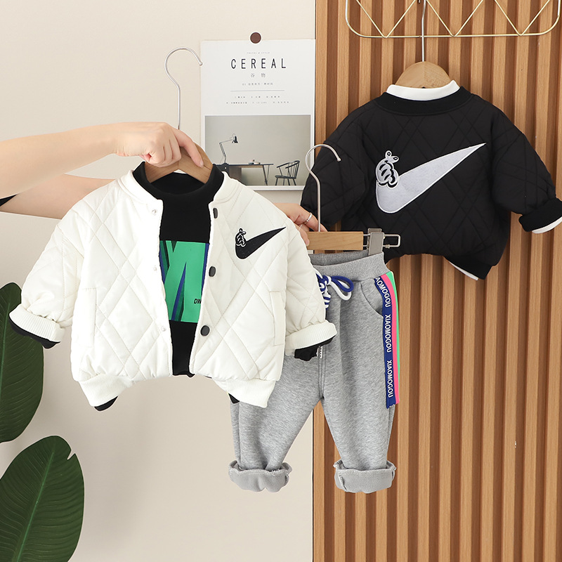 가을 2023 새로운 소년 기모 빵 재킷 긴 소매 3 종 세트 남성 아기 캐주얼 바지 세트 유행스토어 가기