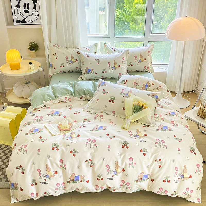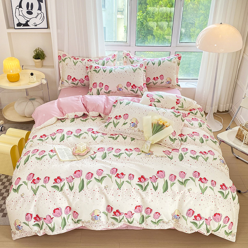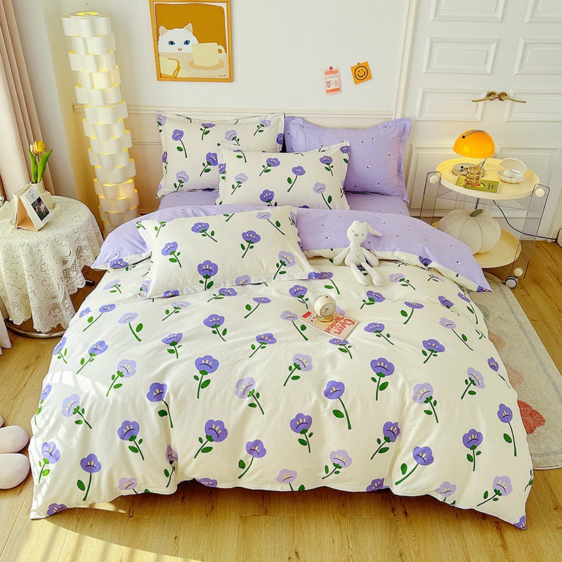 면 인쇄 4 피스 면 소 신선한 꽃 학생 기숙사 3 피스 홈 침대 모자 이불 커버 도매