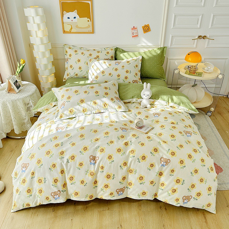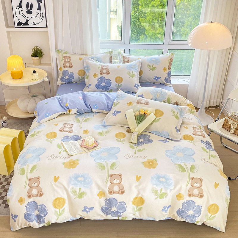 면 인쇄 4 피스 면 소 신선한 꽃 학생 기숙사 3 피스 홈 침대 모자 이불 커버 도매스토어 가기