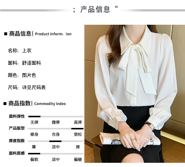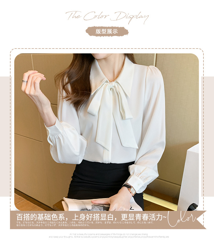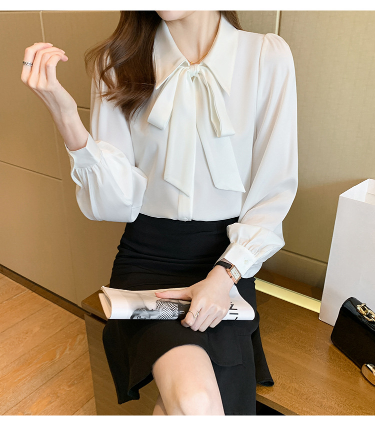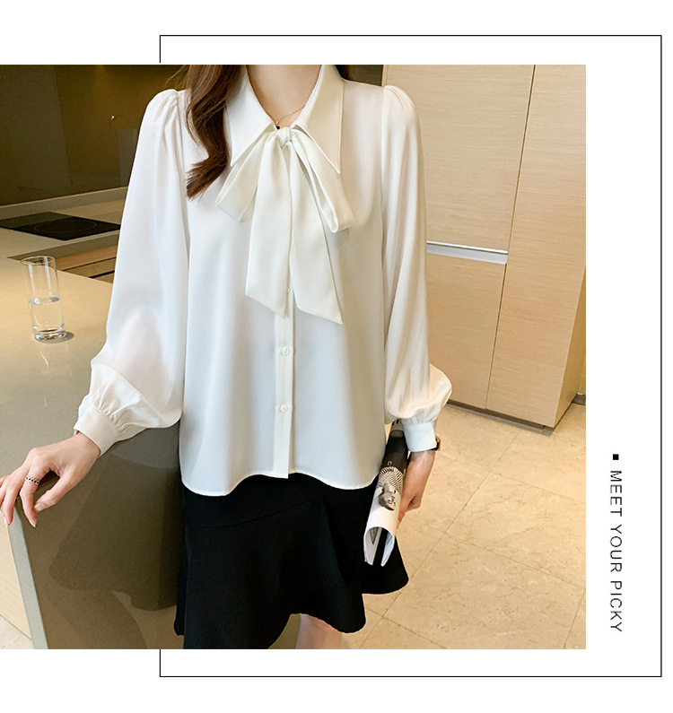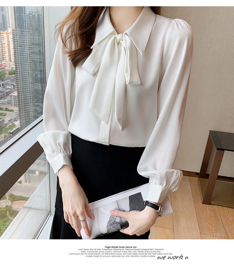 가을 2023 화이트 긴팔 쉬폰 셔츠 여성용 스몰 바디 드레이핑 한국 스타일 리본 탑 젠틀 스타일 셔츠스토어 가기